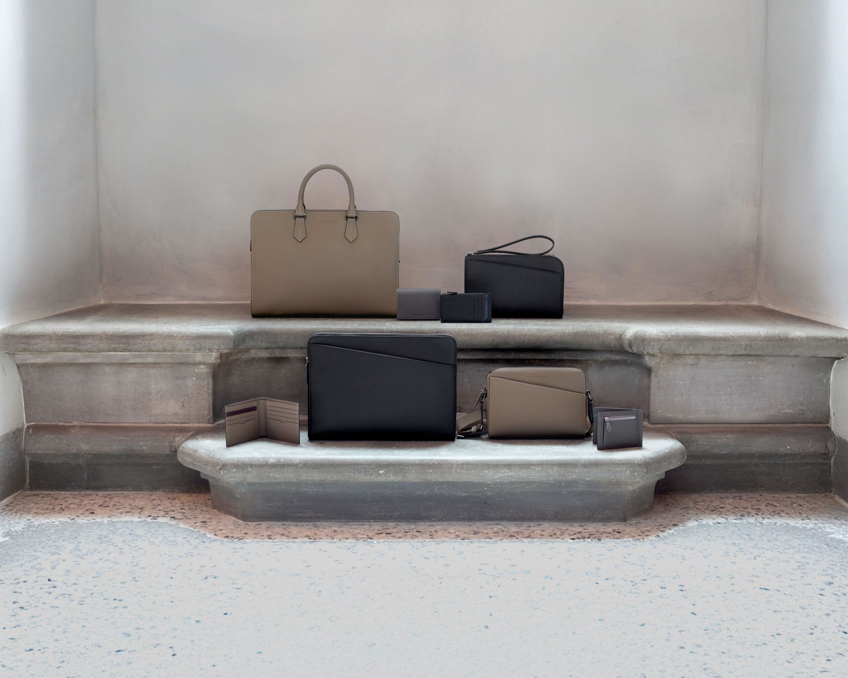 本コレクションでは、ビジネスシーンにも活躍するバッグ4型とウォレット類を含む、計11型の新作アイテムがラインナップ。直線と曲線が織りなす端正なフォルムと、上品さの中に宿る芯の強さを表現したデザインが特徴です。