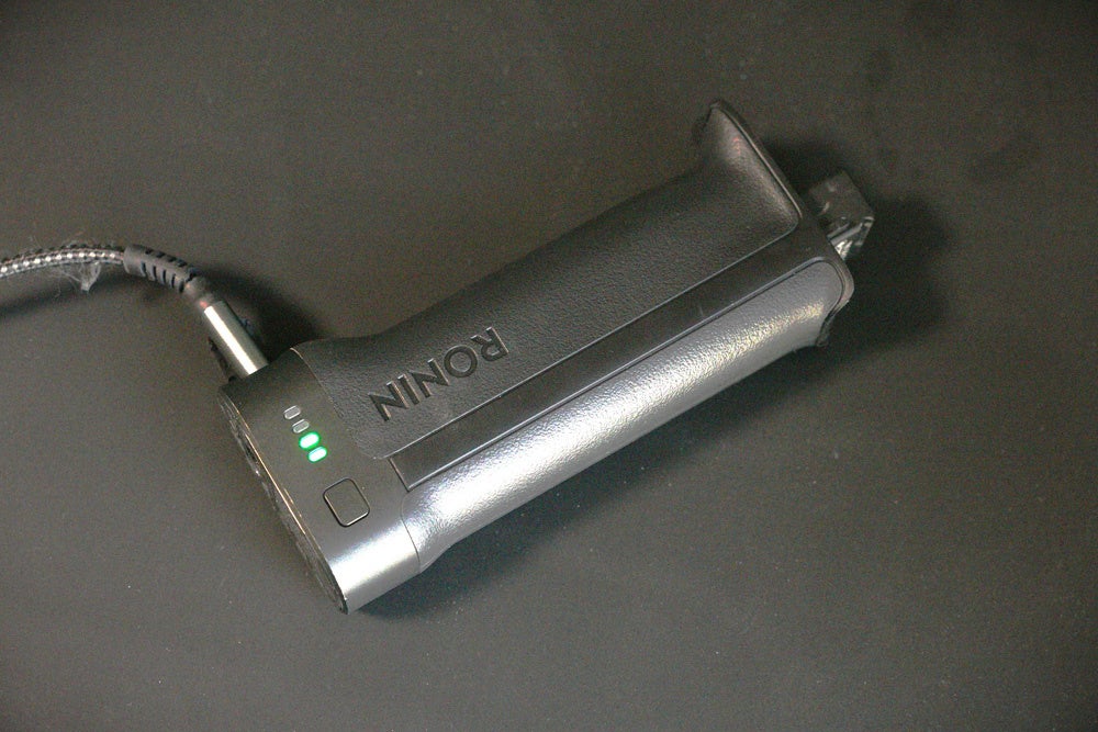 電子ブリーフケース ハンドルは、本体と電子接点で接続し、充電不要でジンバル本体から給電されます。