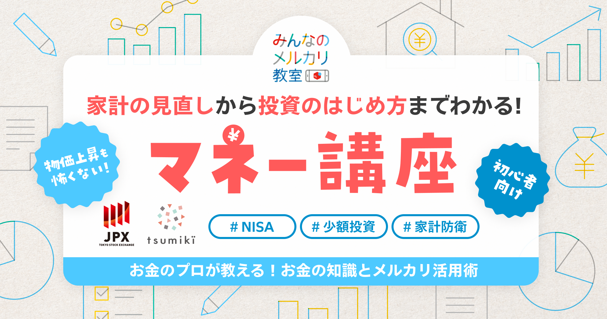 総務省が発表した2022年12月の消費者物価指数では前年同月比で4.0%の上昇幅で、41年ぶりの上昇率となりました。物価上昇が続く中、日本の平均年収は30年ほど横ばいで、支出は増え、収入が増えない現状があります。そのような中、2022年から高校の家庭科で「資産形成」など金融教育に関する内容が拡充され、2023年度の税制改正ではNISAの恒久化・投資枠の拡大が決定されるなど貯蓄から投資への風潮が強まりつつあります。また、これまで「メルカリ教室」を受講された方々からも、家計管理や投資の基礎を学びたいという声をいただいていました。