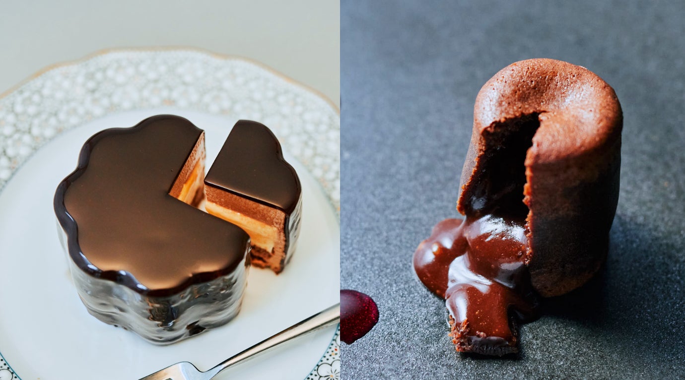 ショコラティエがその日ごとに焼き加減を調整し、自立しているのがやっとな程のレア感。添えられたジュレやソースと合わせて、味わいの変化もお楽しみください。ご注文をいただいてから焼き上げます。