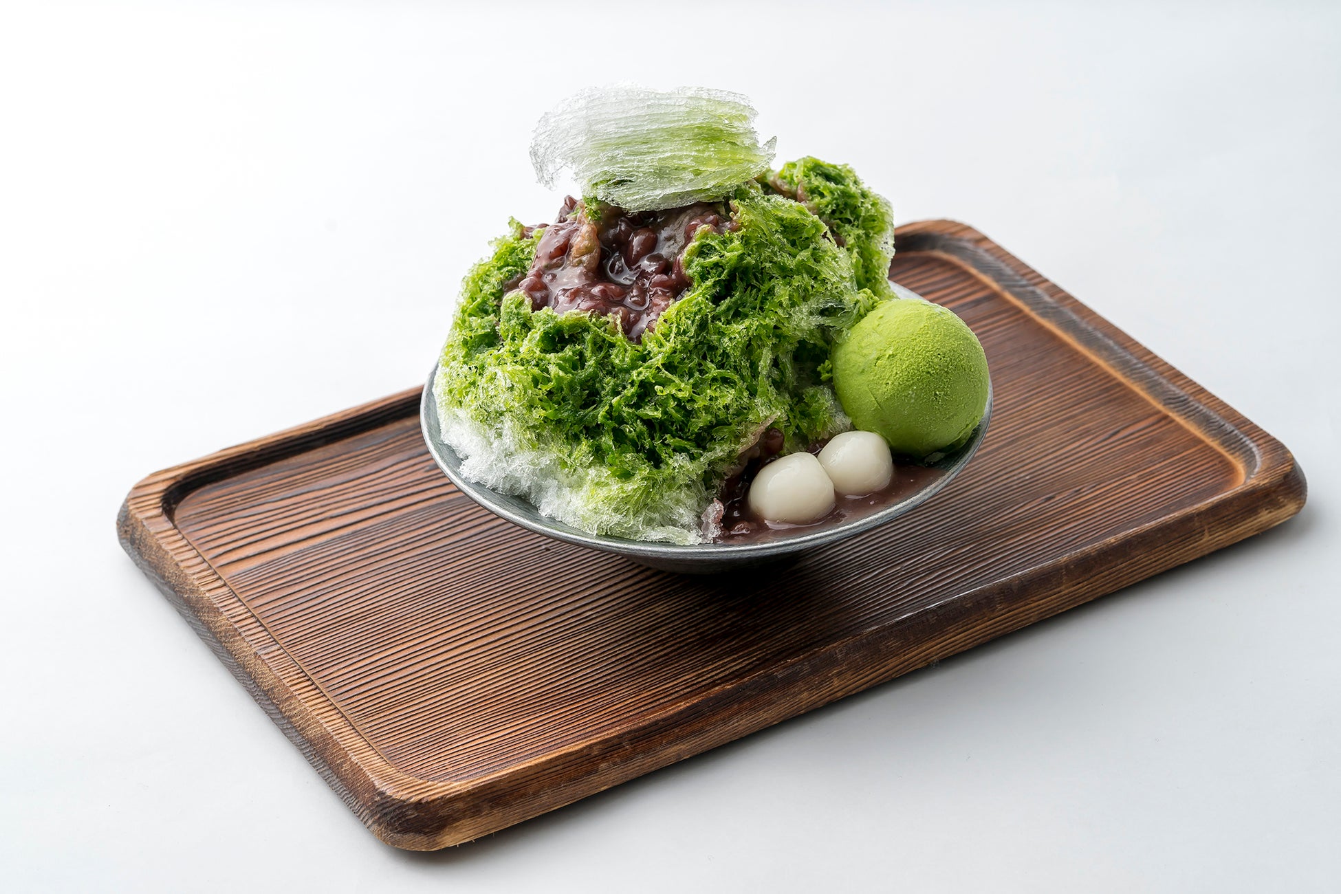 甘味では滅多に使用されることがなく、普段はお茶席で提供されるランクの抹茶「松の齢」を使用した特別なかき氷です。