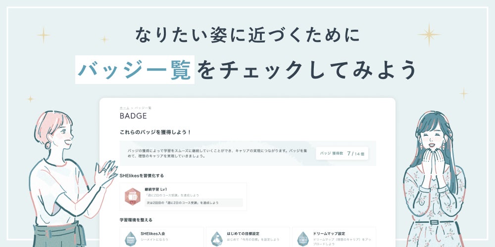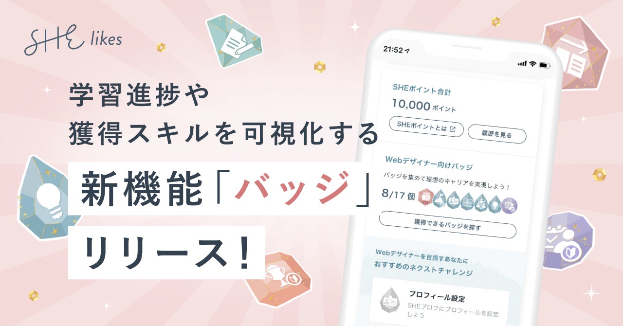 SHElikesに新機能、学習進捗や獲得スキルを可視化する「バッジ」がリリース