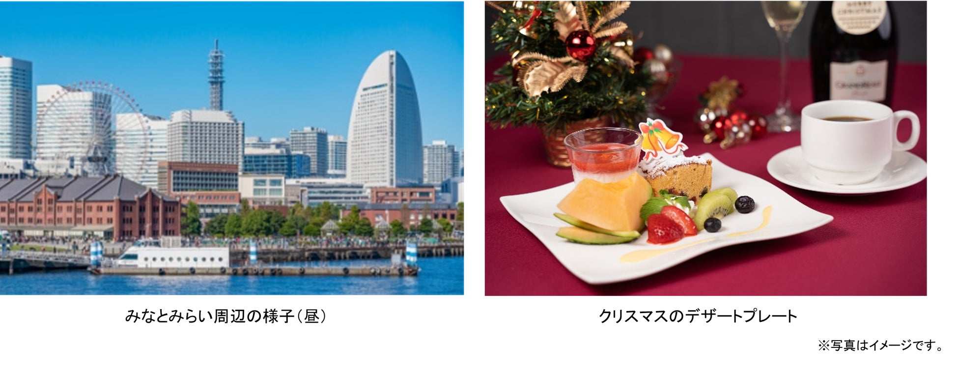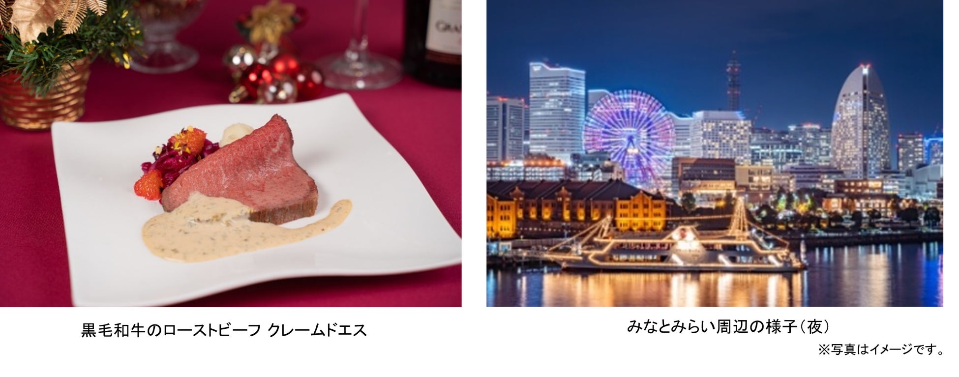 メニュー | ・4種のオードブル:ベークドエッグポテト/カマンベールチーズのフリット/ホタテのムース/ワカサギのエスカベッシュ ・サラダ:今が旬の横浜食材を使ったサラダ ・スープ:クラムチャウダー ・メイン:黒毛和牛のローストビーフ クレームドエス ・パン:ミニフランスパン ・クリスマスデザートプレート:シュトーレン、柚子香る苺のピューレのパンナコッタ、フルーツアラカルト ・食後のドリンク:コーヒーもしくはダージリン | ・4種のオードブル:ベークドエッグポテト/カマンベールチーズのフリット/ホタテのムース/ワカサギのエスカベッシュ ・サラダ:今が旬の横浜食材を使ったサラダ ・スープ:クラムチャウダー ・メイン:黒毛和牛のローストビーフ クレームドエス ・パン:ミニフランスパン |