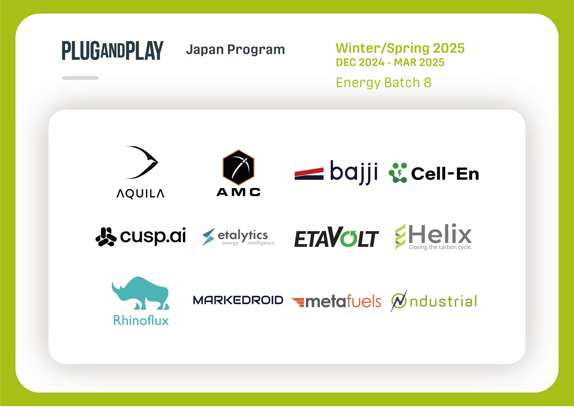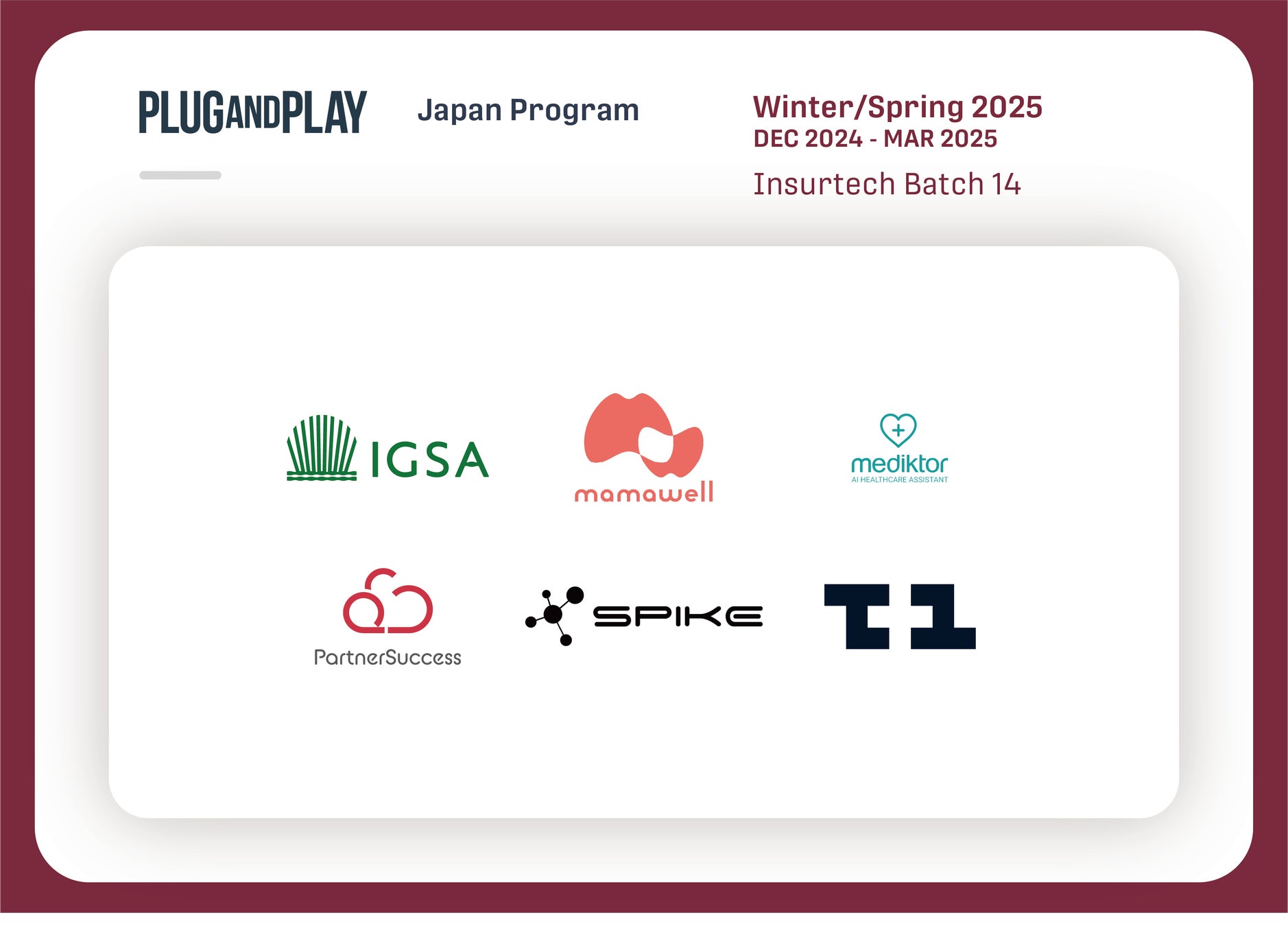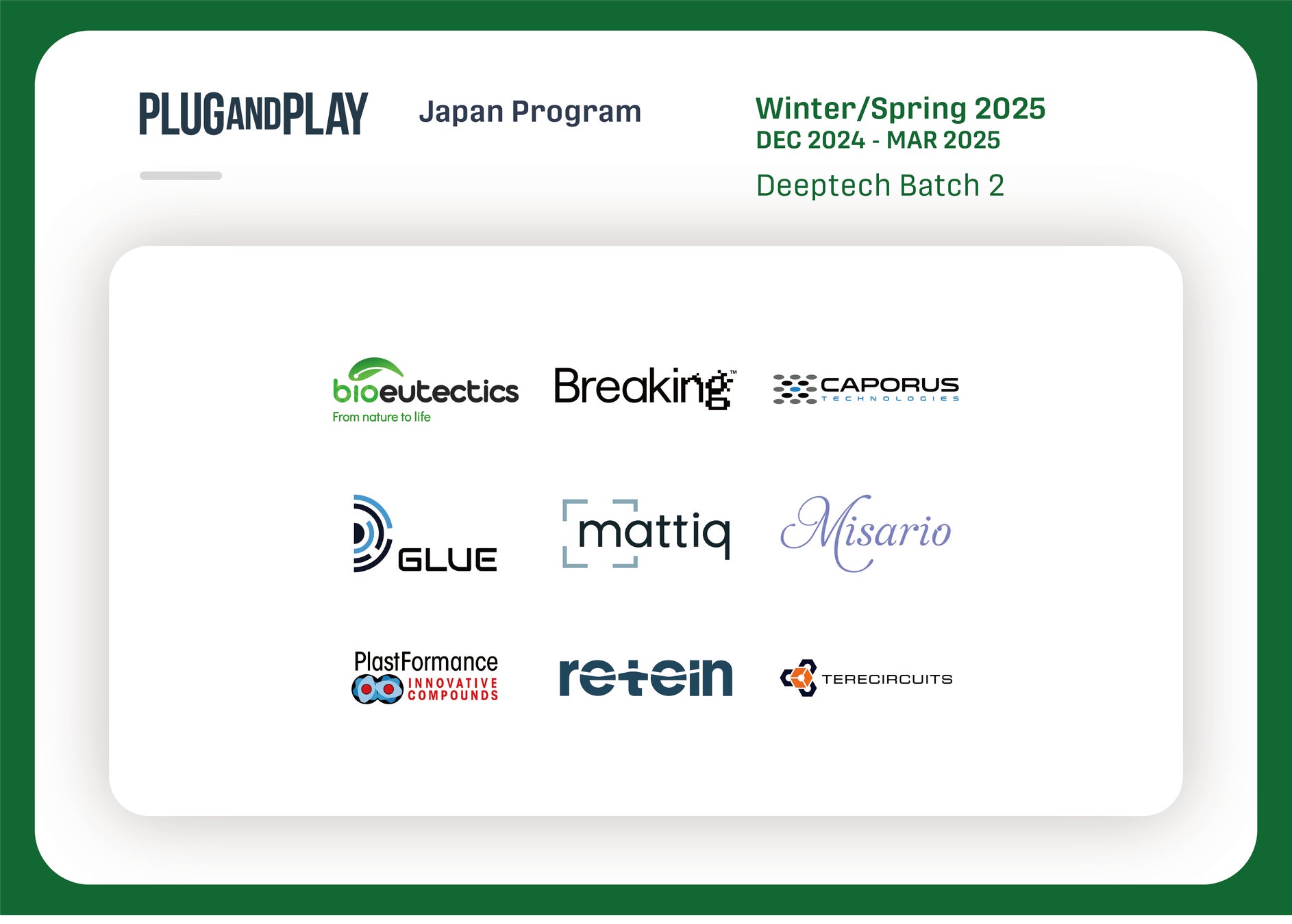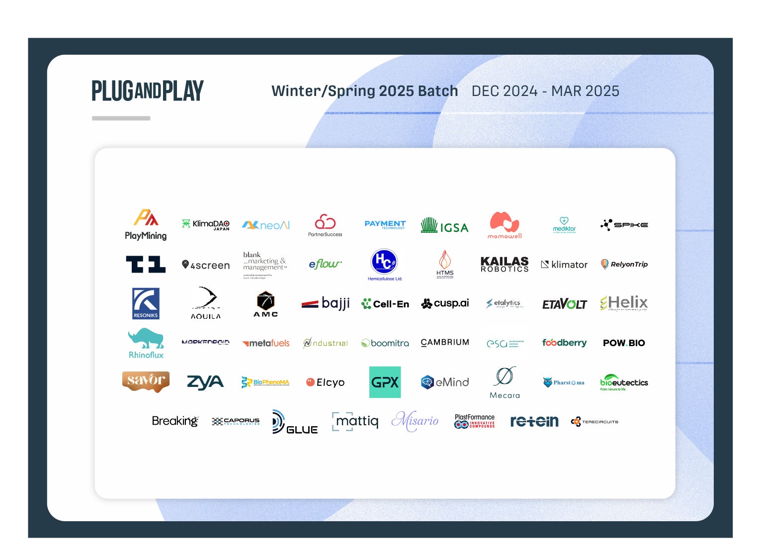 Plug and Play Japan 株式会社(本社:東京都渋谷区、代表取締役社長:ヴィンセント・フィリップ、以下「Plug and Play Japan」)は、2025年1月〜3月期で実施するアクセラレータープログラムWinter/Spring 2025 Batch*において、国内外合計54社のスタートアップを採択したことを発表いたします。