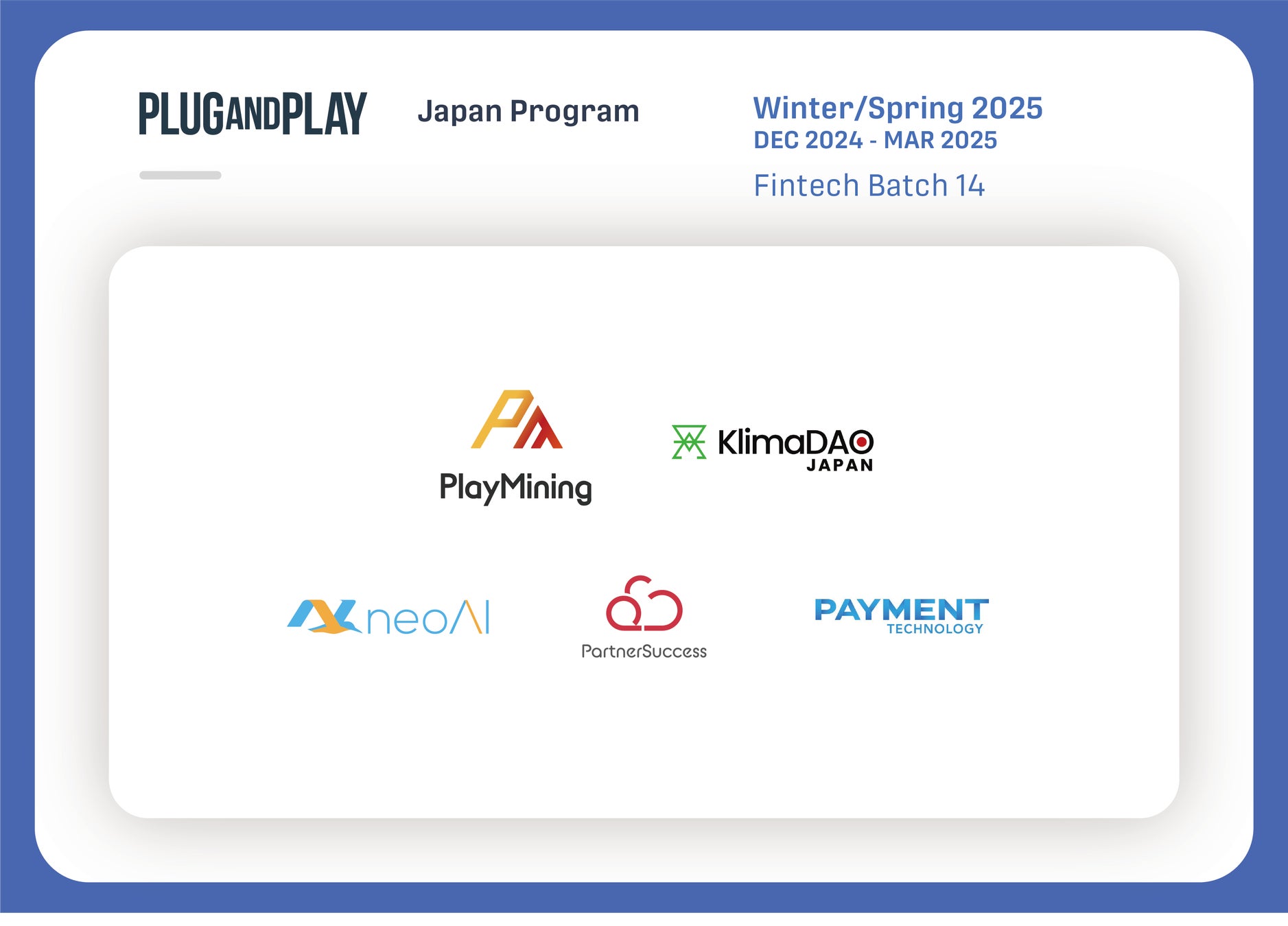 *Batchとは、Plug and Play Japanにおいて、アクセラレータープログラム期間を表す単位。