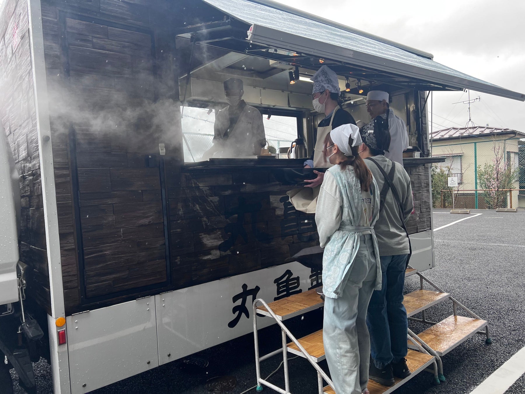 教室では、柚子の皮の粉末を練り込んだ生地のうどんと、茹でたうどんに柚子の皮の粉末をかけて香りを引き立てるうどんの2種類を試作。茹でる作業は丸亀製麺のキッチンカーで当社社員が担当し、その他の作業は児童が主体となって実施しました。また、児童は柚子を使用したうどんの商品開発について当社社員に対してプレゼンテーションを行い、社員のフィードバックを参考にしながら改良を重ねました。