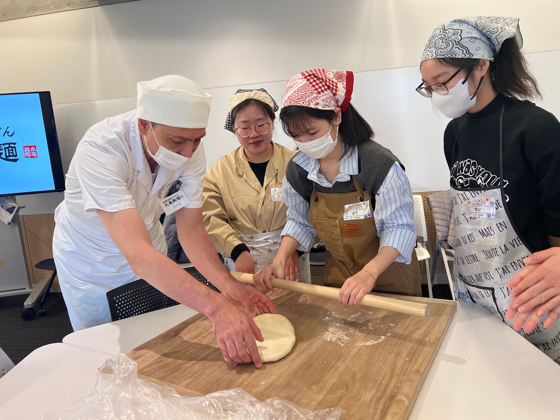 ② 横浜商科大学の留学生へうどんを通して学生同士の交流を深め日本文化を伝達
