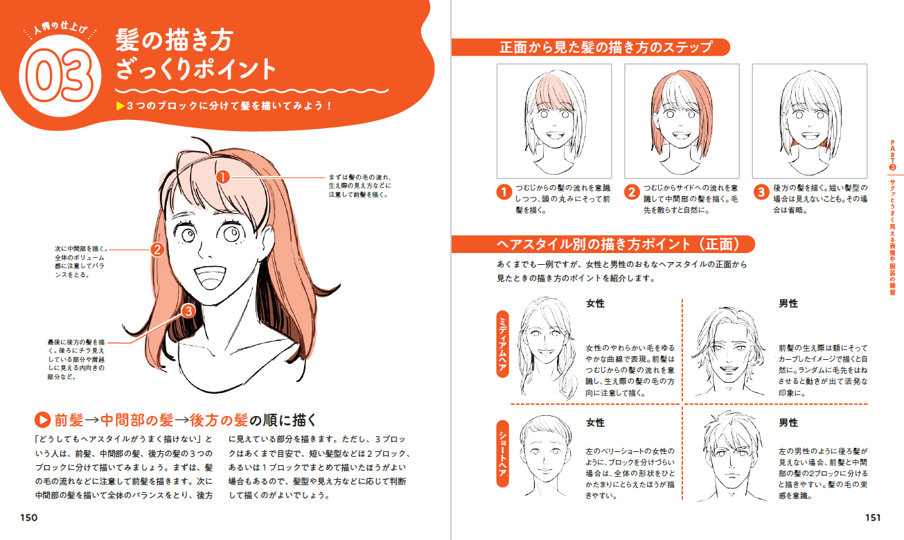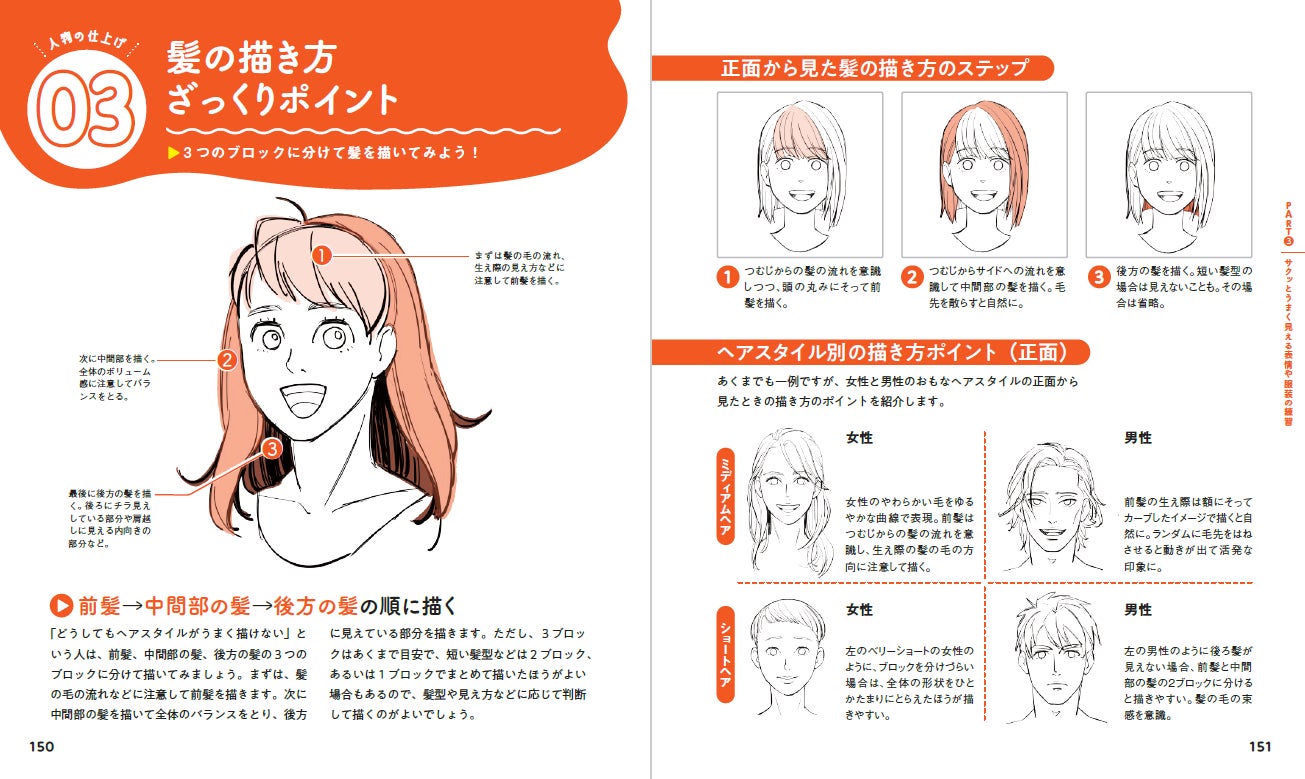1本の線=イメージラインの引き方から手足などのパーツの描き方まで、人物を描くポイントをわかりやすく解説。「しなやかさ」「力強さ」といった印象を、ポーズとして表現するためのテクニックもたくさん紹介しています。ポーズだけでなく、顔・髪型・服装を描く際におさえておきたいコツやポイントも解説しており、イラストや漫画を描きたい人に役立つ情報が盛りだくさんです。