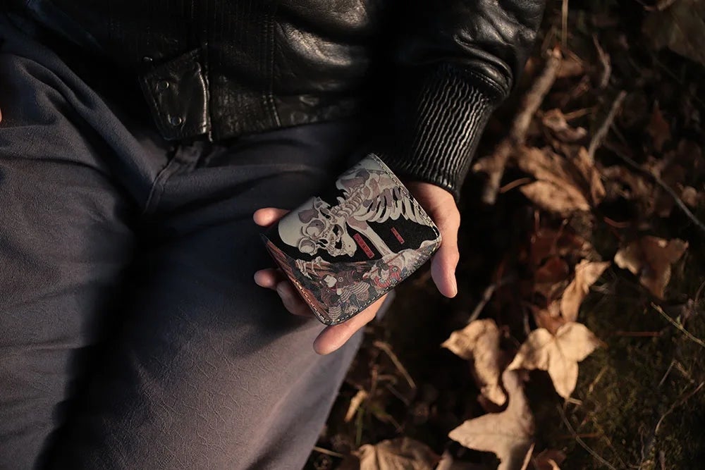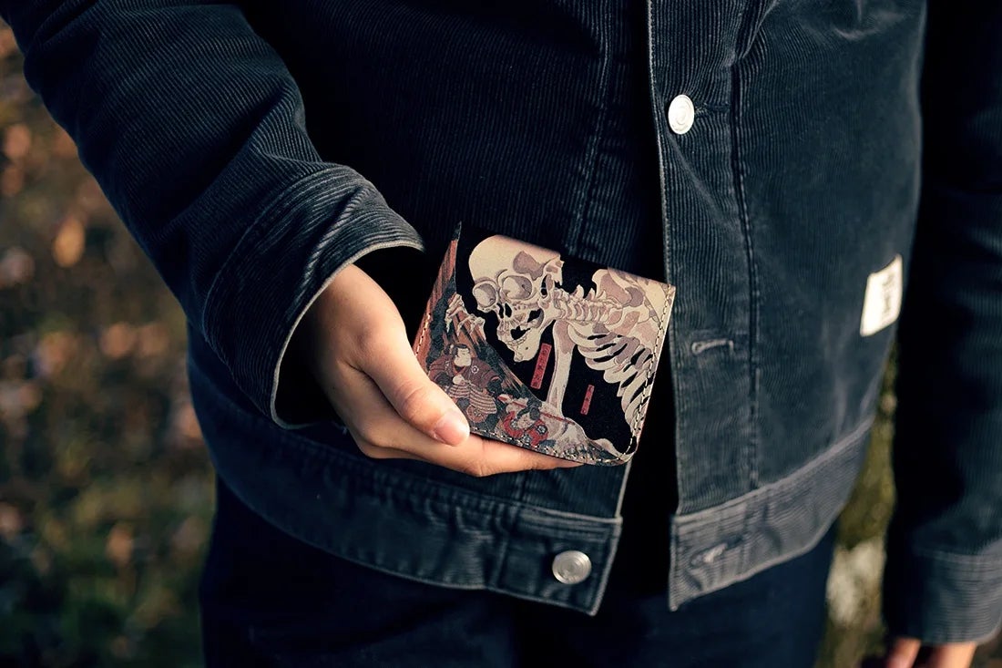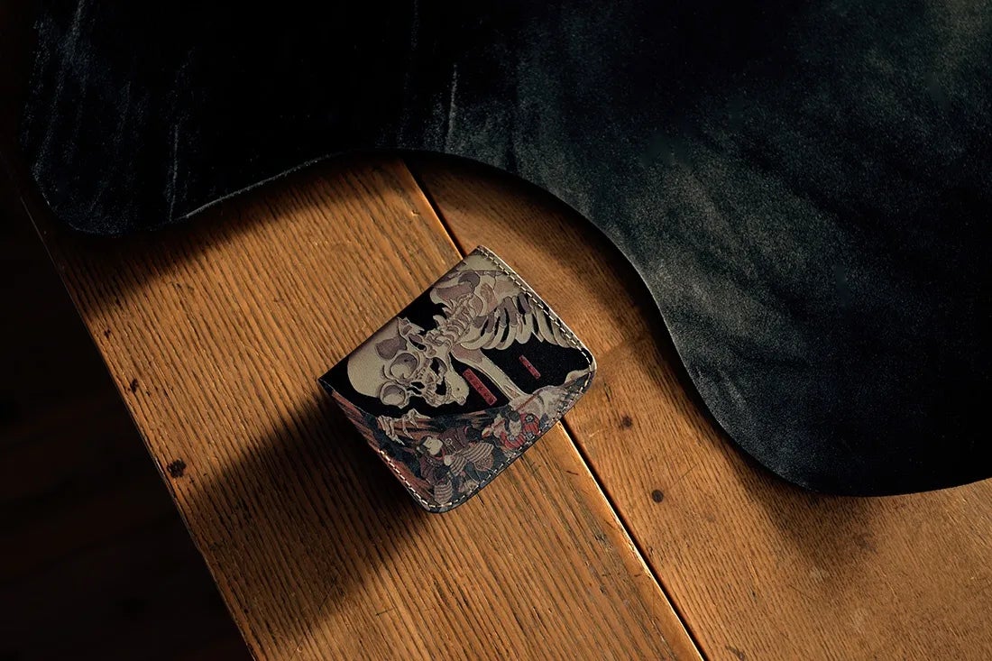 浮世絵師・歌川国芳の名作「相馬の古内裏」が、本革のミニ財布に!妖怪「がしゃどくろ」を全面にデザイン。