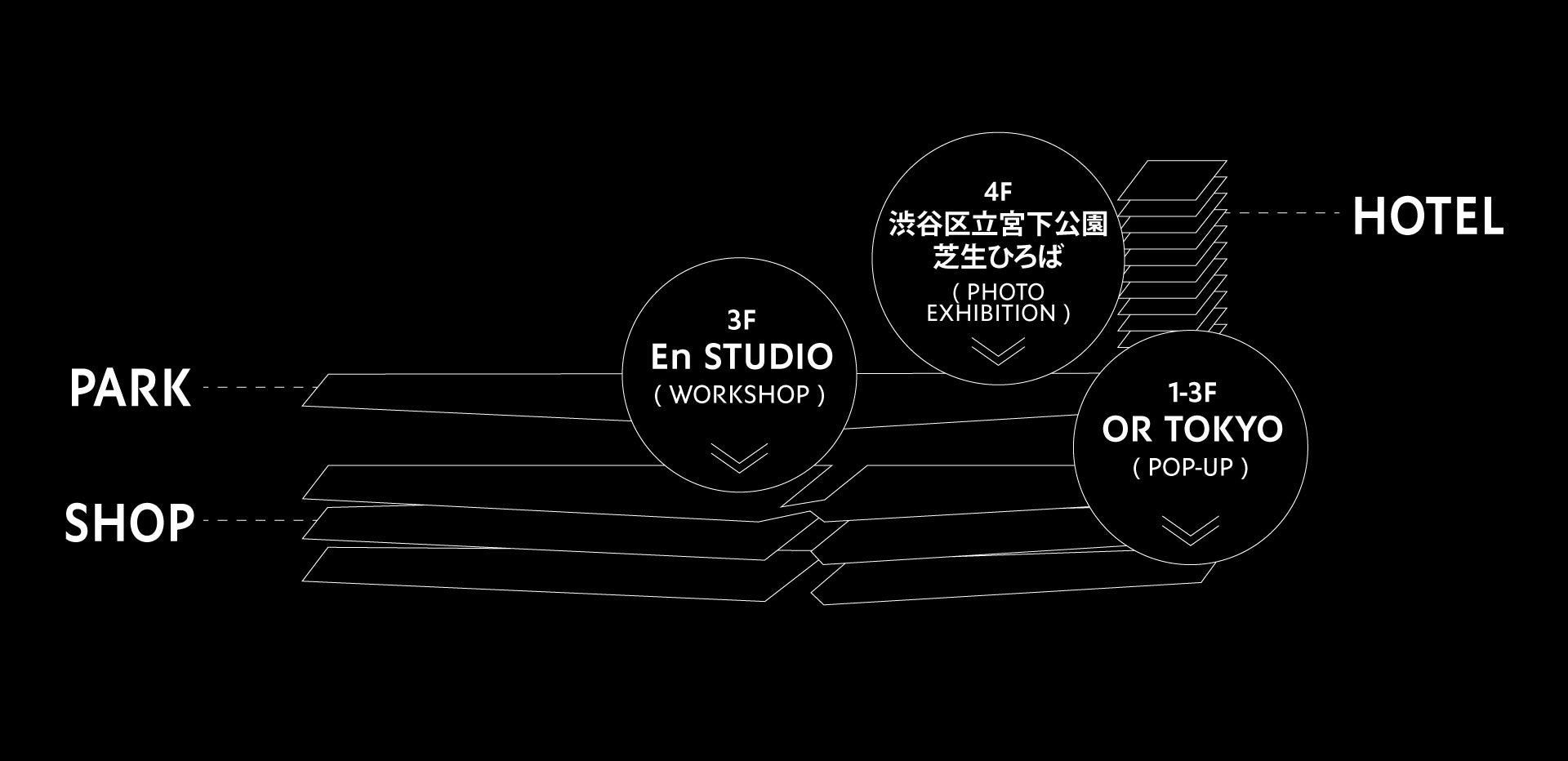 MIYASHITA PARK内会場の各フロアでは、様々なコンテンツを楽しんでいただけます。