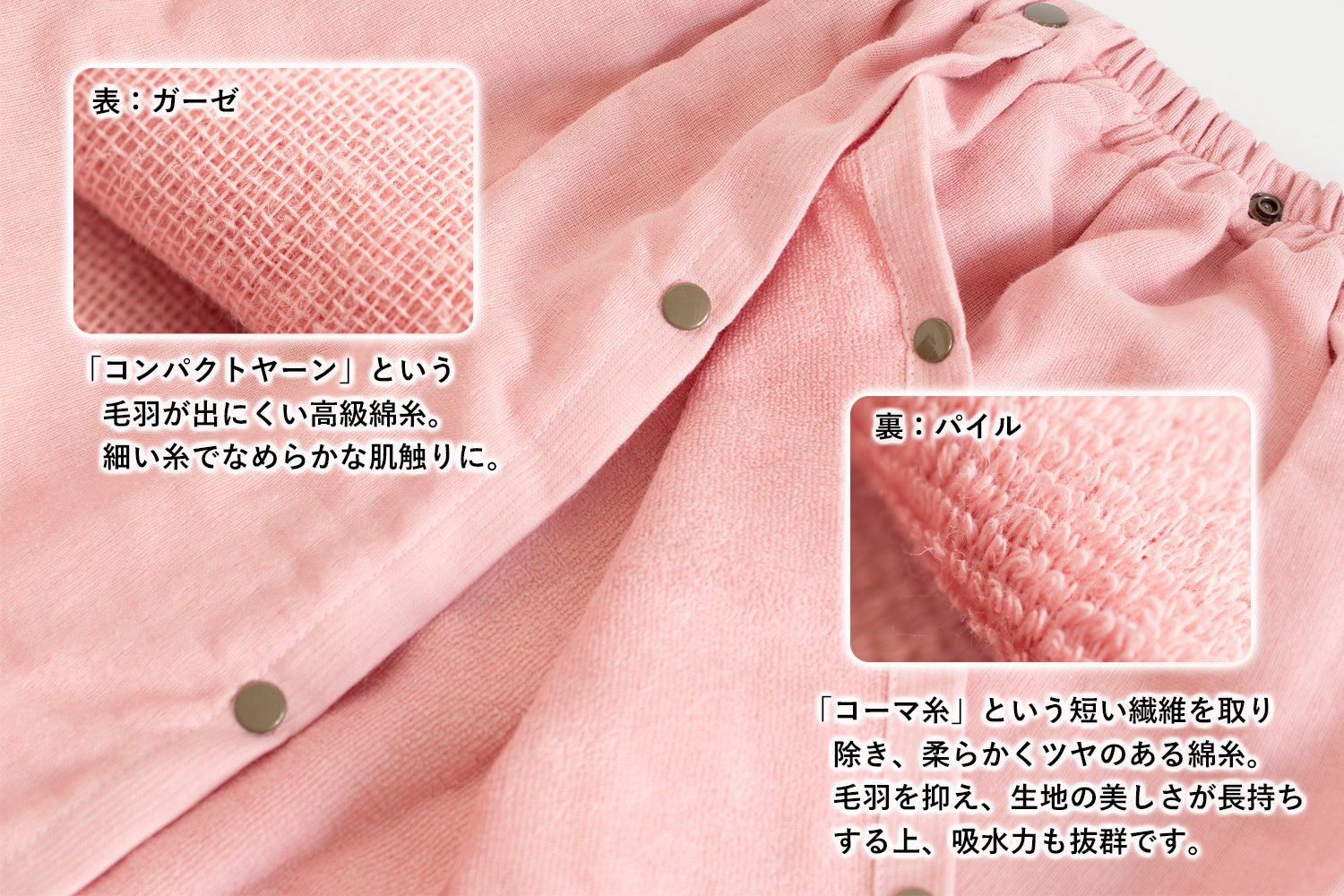 さらに、パイル生地とガーゼ生地で二重構造のため、裏地が透けにくいなど、