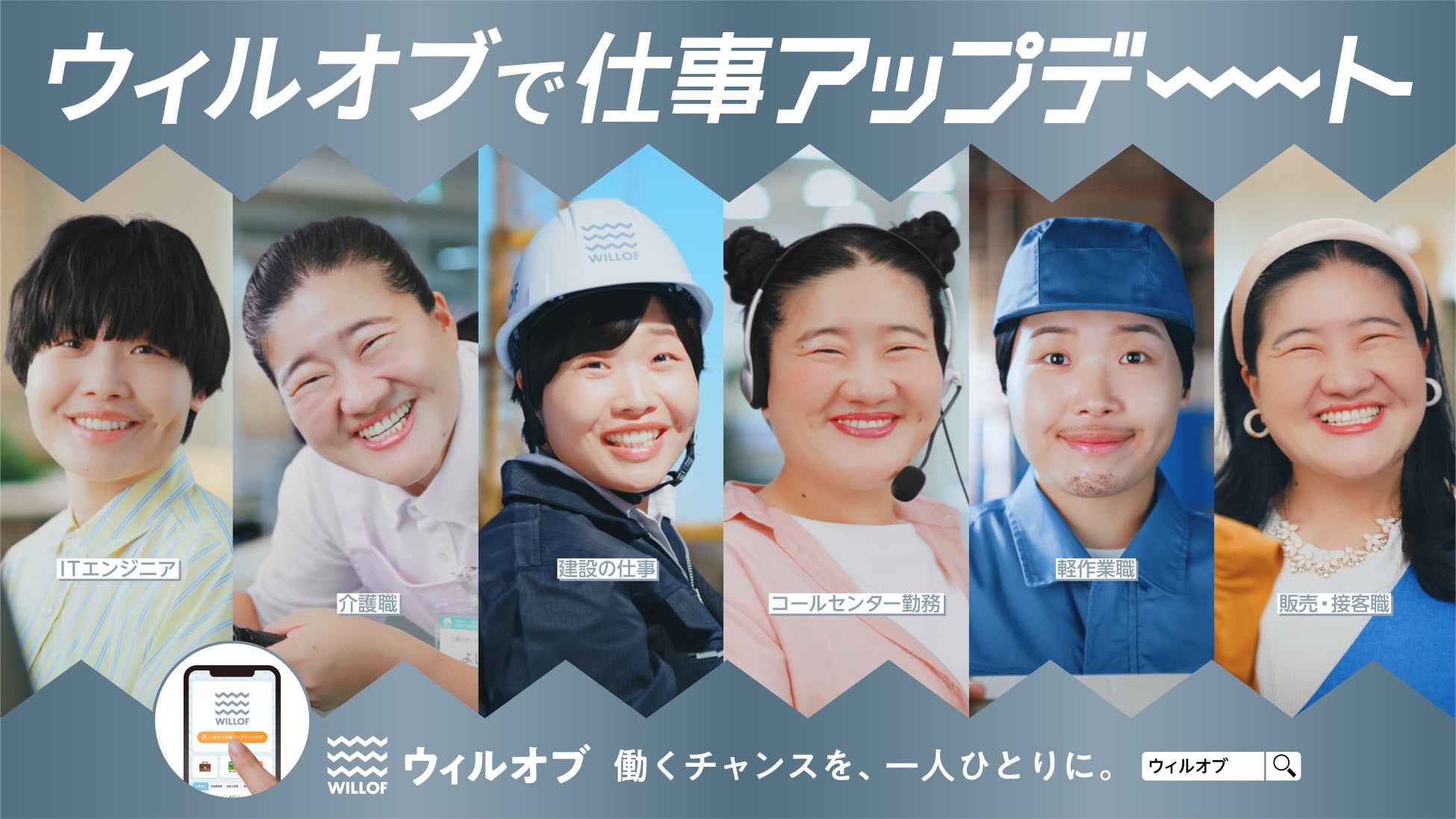 CM特設サイト | ウィルオブで仕事アップデート:https://willof.jp/shigoto_update/ |