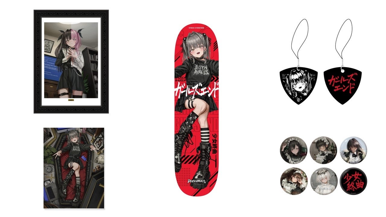 販売グッズ:複製原画、キャンバスアート、スケートボード デッキ、ギターピックチャーム、缶バッジなど