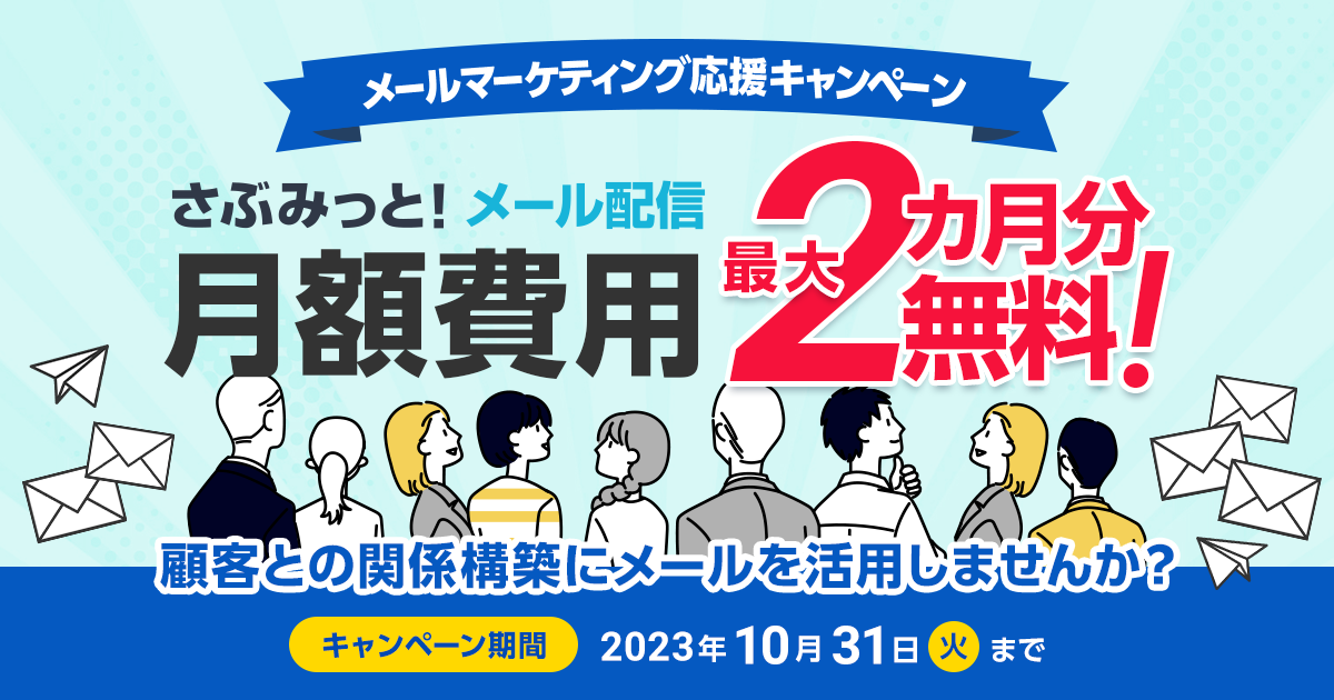 月額900円から使えるメール配信システム「さぶみっと!メール配信」【顧客との関係構築にメールを活用しませんか?】メールマーケティング応援キャンペーンを開始