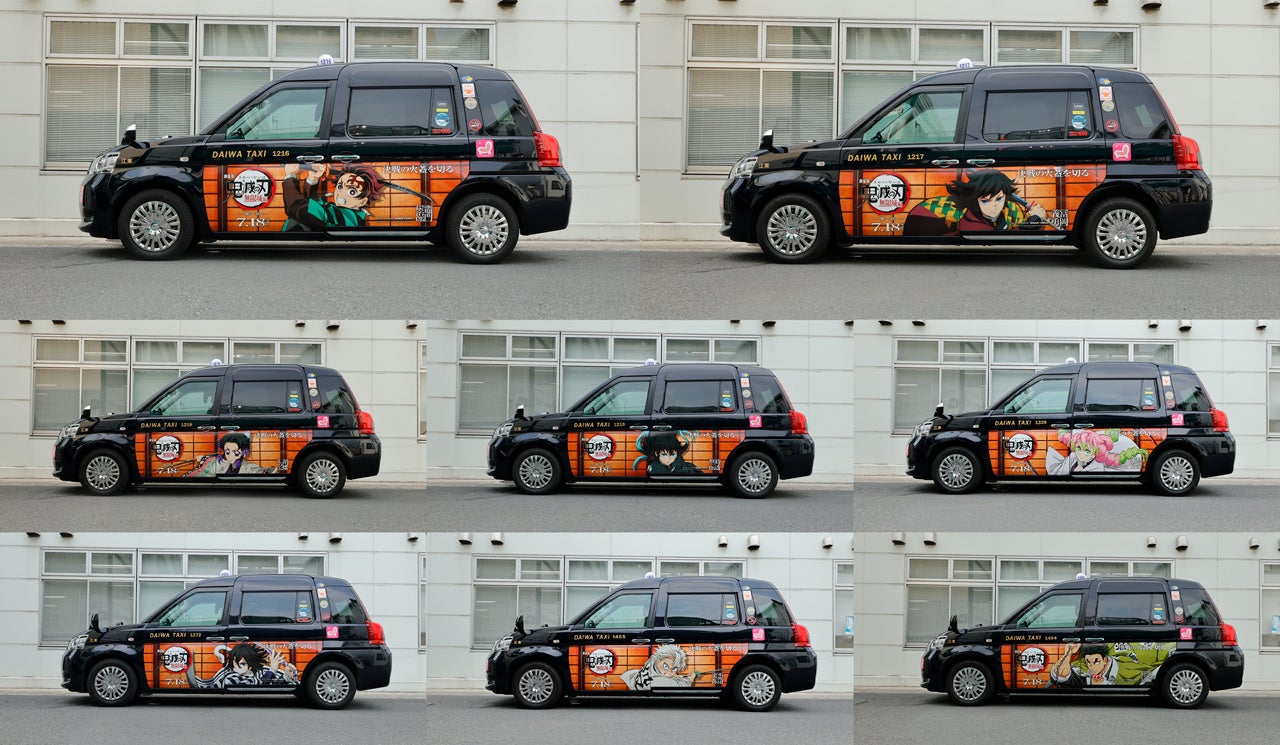 企画1. 竈門炭治郎や柱などの人気キャラクター計8種のラッピングタクシーが走行