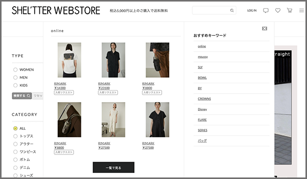 この度、『SHEL’TTER WEBSTORE(シェルターウェブストア)』ではZETAが提供するEC商品検索・サイト内検索エンジン「ZETA SEARCH」を導入し、検索機能によるEC全体のCX向上に取り組んでいます。