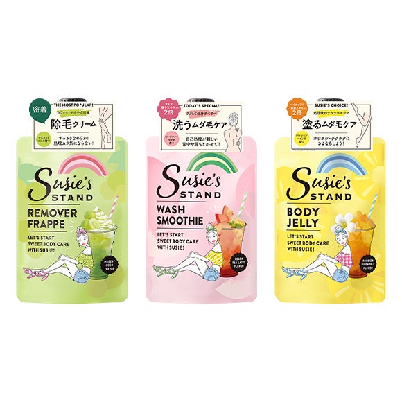 おうちで簡単にムダ毛のお手入れができるスキンケアシリーズ『スージースタンド』より、除毛クリーム・ボディ洗浄料・保湿ジェルが今年も発売!