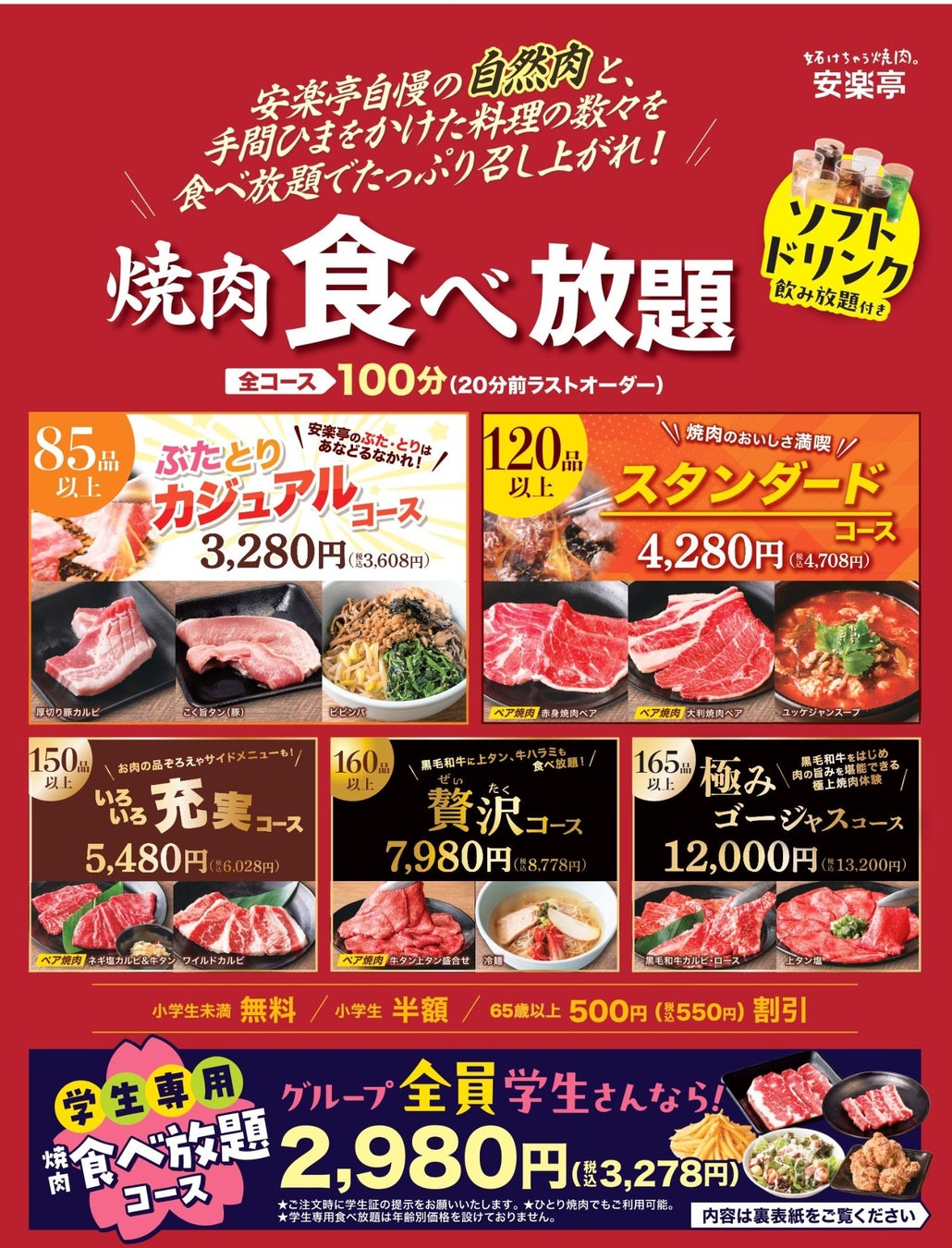 詳しいメニュー内容は 安楽亭HPをご覧下さい。