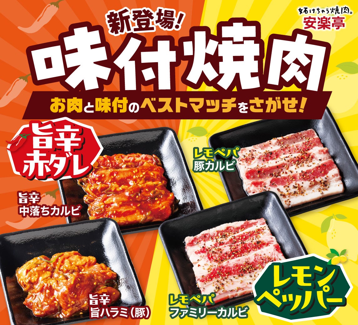 焼肉の楽しみ方が広がる!安楽亭“自然肉100%”食べ放題リニューアル!新ジャンル「旨辛赤ダレ」「レモンペッパー」焼肉登場&噂のあの肉「ペア焼肉」ラインナップも充実。“おいしさ満喫”の食べ放題新体験へ!