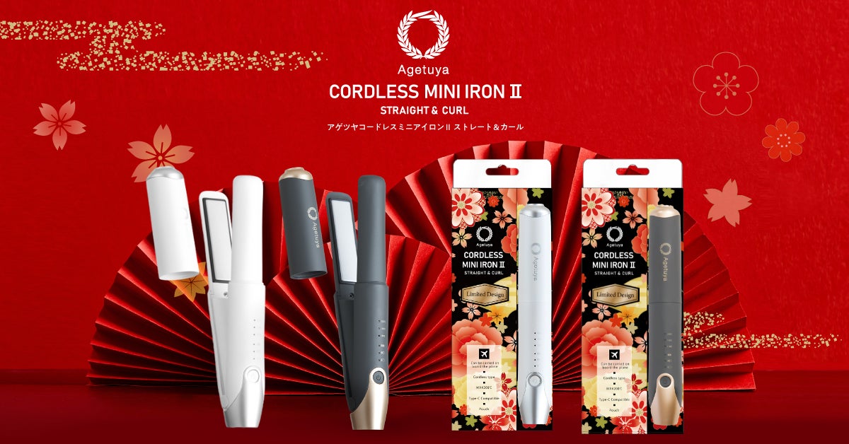 ヘアアイロンブランド「Agetuya(アゲツヤ)」を展開する株式会社ローネジャパンは、AgetuyaコードレスミニアイロンIIの「和柄」パッケージデザインを、2024年10月15日(火)より一部ドン・キホーテにて数量限定で発売いたします。