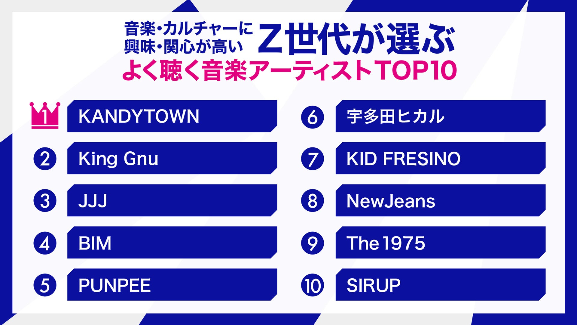 ⑤音楽・カルチャーに興味・関心が高いZ世代がよく聴く音楽アーティストTOP10
