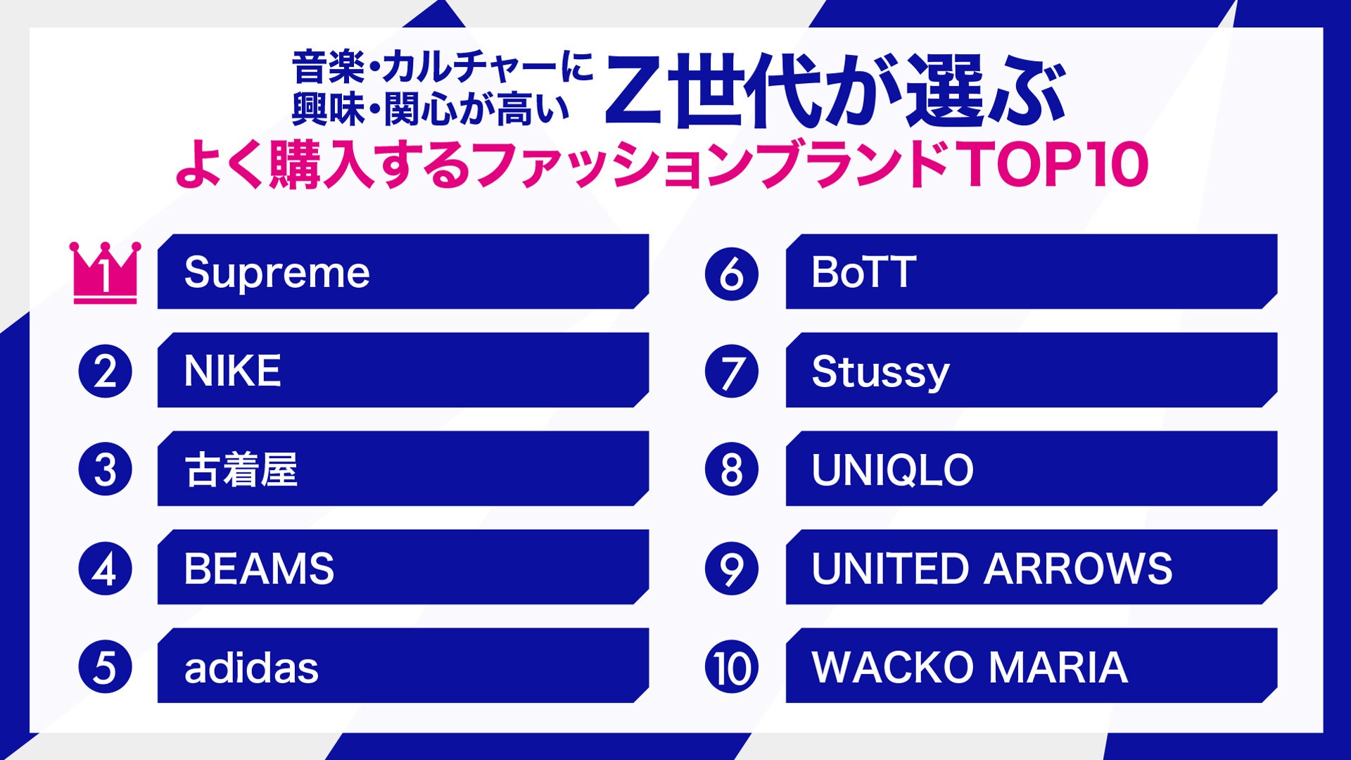 ⑥音楽・カルチャーに興味・関心が高いZ世代がよく買い物をするファッションブランドTOP10