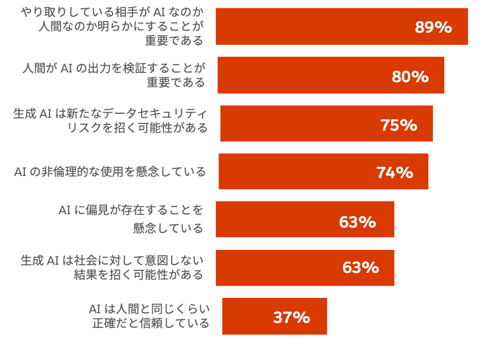 日本の顧客の43%は、AIの適用方法について高い可視化を保つことで信頼が高まると回答しています。