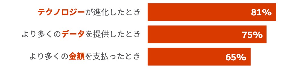 日本の顧客の45%は、変化するニーズを企業が理解することを期待しています。