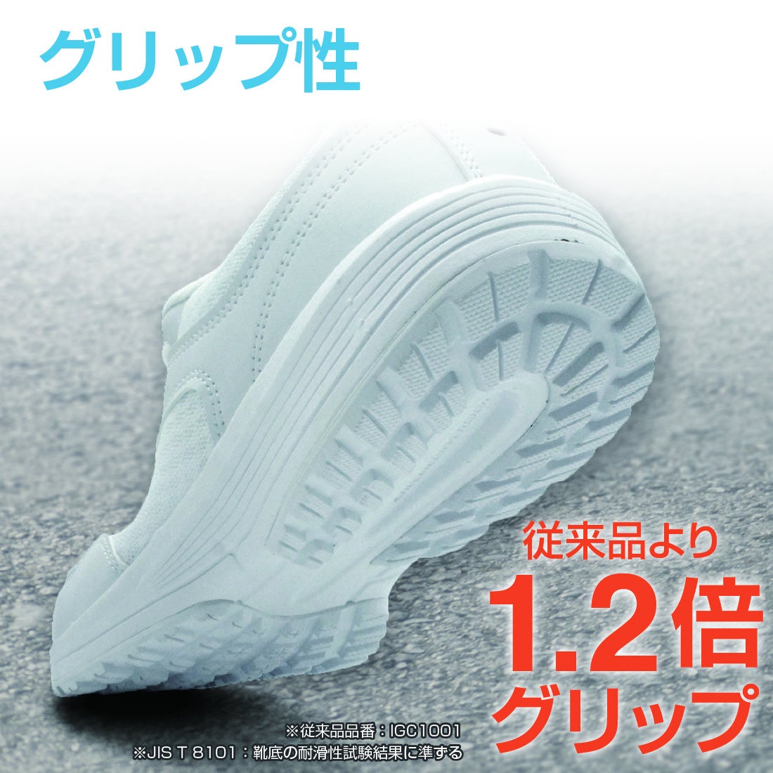 ※2 ソールのグリップ性:従来品(品番:IGC1001)より約120%に向上 ※JIS T 8101:靴底の耐滑性試験結果に準ずる