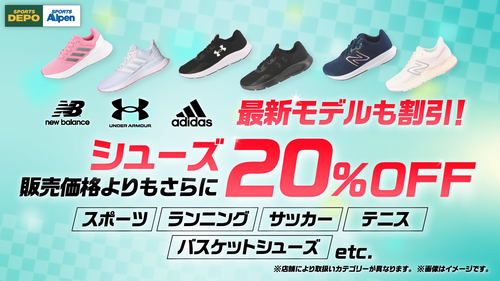 「春のOPENING SALE」では、新生活や新学期で役立つシューズやウェア、バッグ、スポーツ用品を期間限定のお買い得価格でご用意いたしました。シューズは、アディダス、ニューバランス、アンダーアーマーの対象商品が20%OFFと人気ブランドのシューズをお得に手に入れる絶好の機会です。