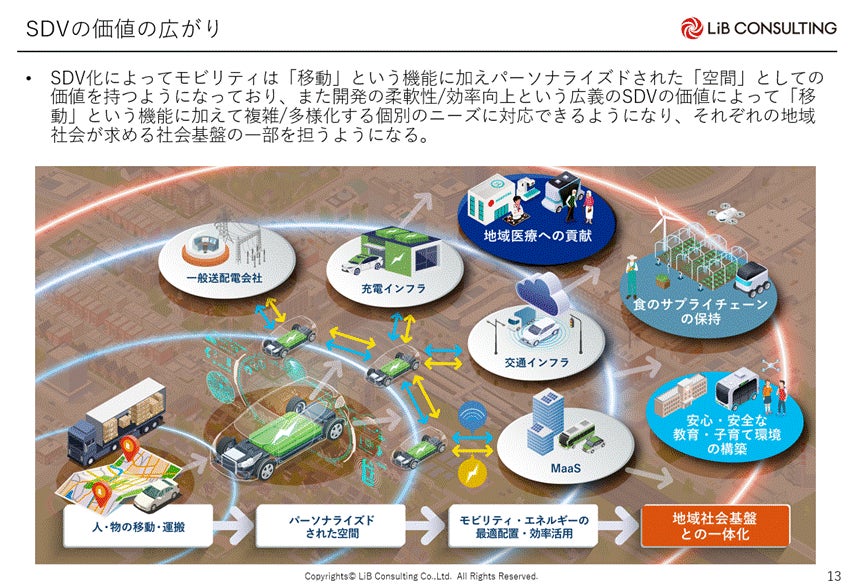 モビリティは「医療」「教育」「食」などの多様な領域でそれぞれの人々や地域社会が求める高度なニーズに応え、社会基盤としての役割を一層深め、その価値を向上させていくことが予想されています。