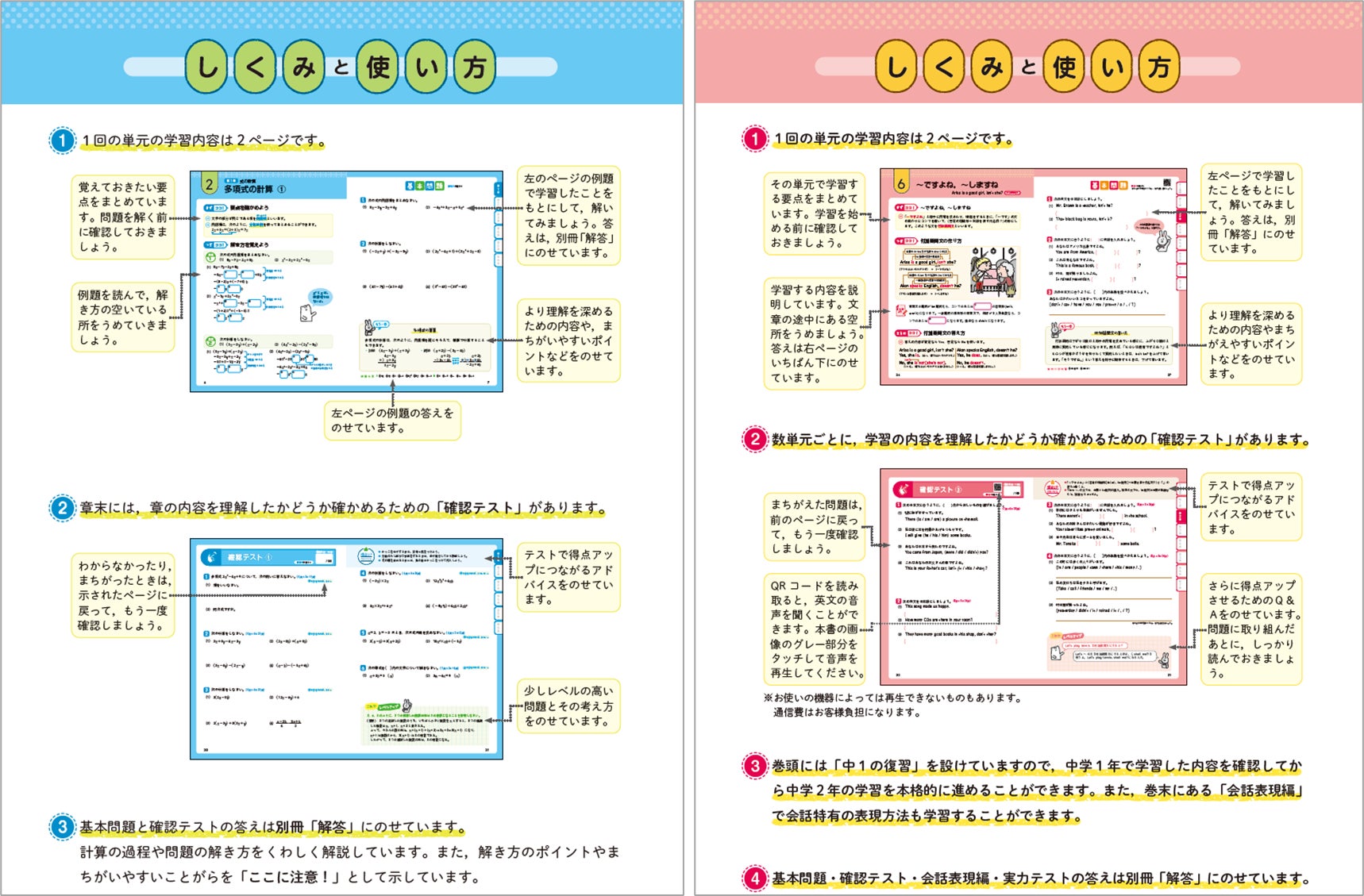 ●英語はQRから英文音声をカンタン再生。数学は計算過程・解き方がよくわかる解答編で学習しやすく!