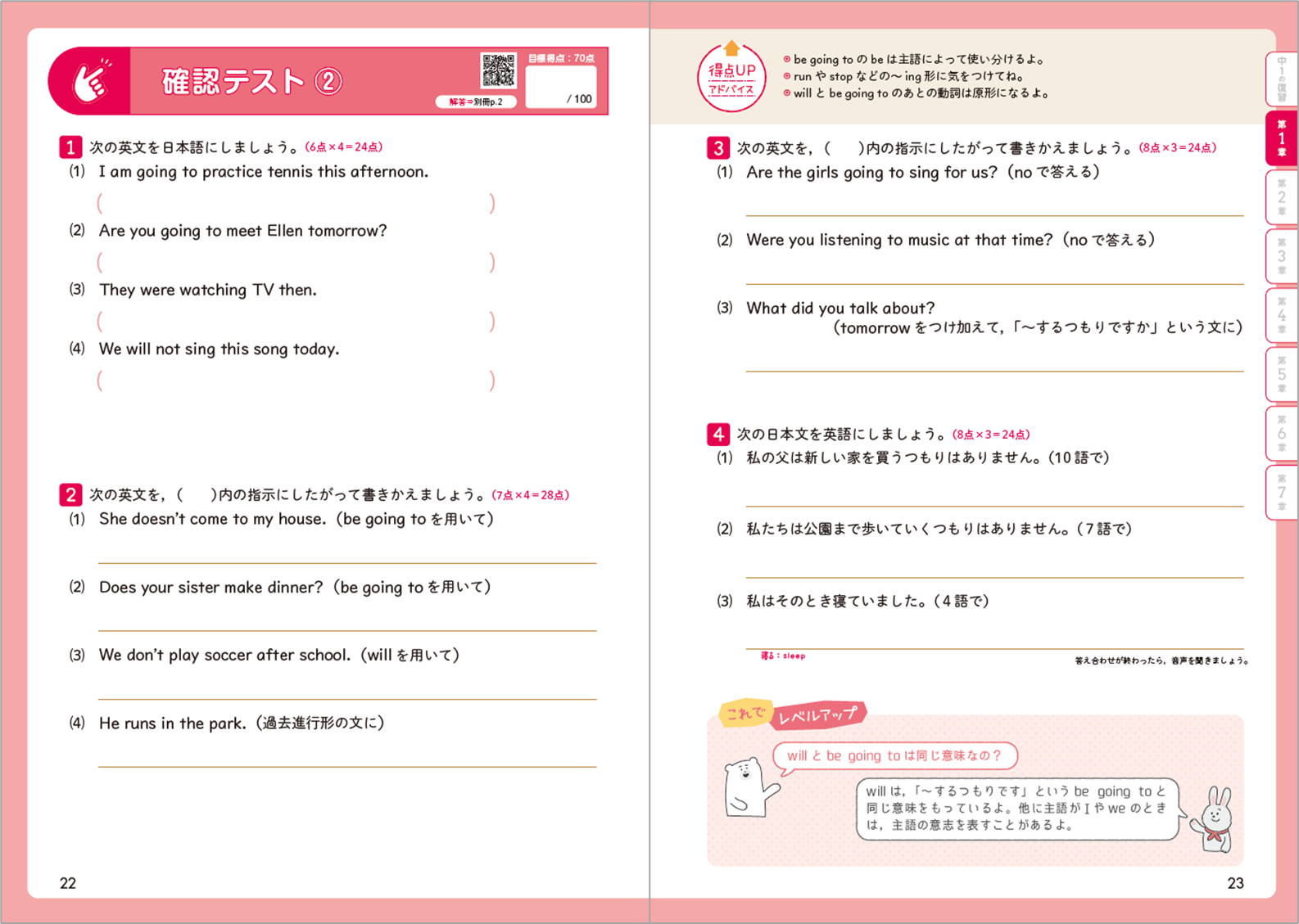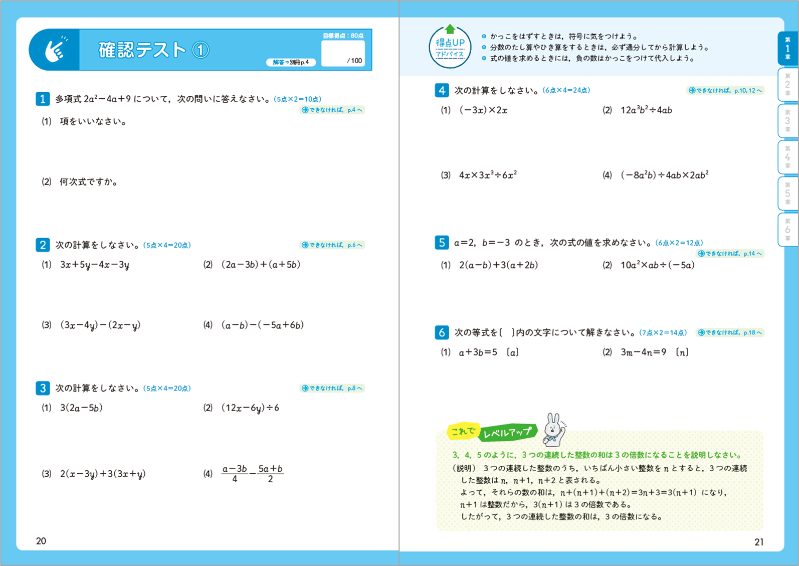 ・章末にある「確認テスト」は、その章の復習ページです。学習内容がしっかり身についているか確かめられます。