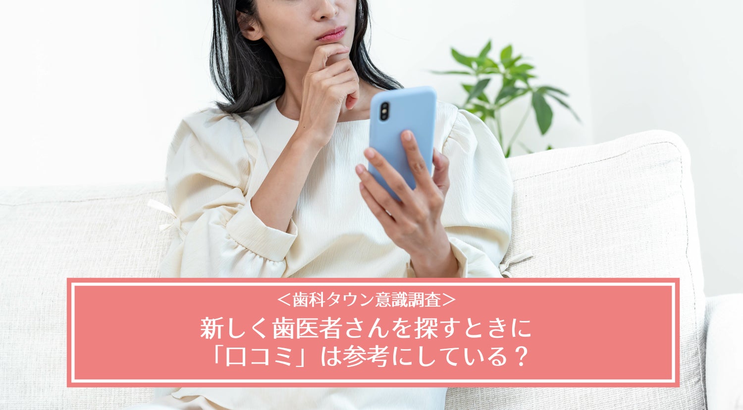本アンケートの結果から、新しく歯医者さんを探すときには、90%以上の人が口コミの評価を参考にしていることが分かりました。口コミの信ぴょう性が問われることもありますが、現状多くの人が口コミを参考に歯医者さんを選んでいるようです。