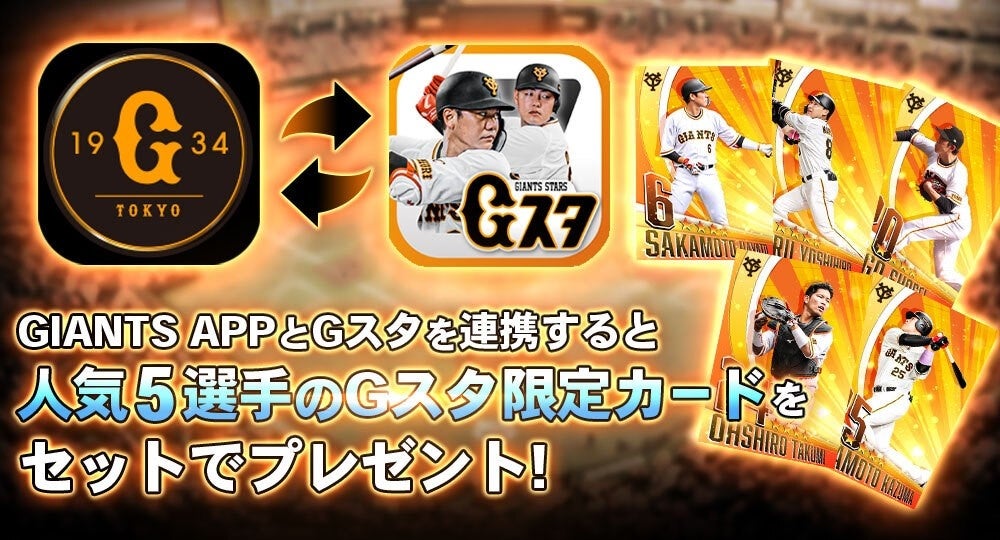新シーズン開幕を記念し3月25日(金)より、「GIANTS APP」内で「Gスタ」と連携していただくと、人気5選手のGスタ限定カードがセットで貰えるキャンペーンが行われます。