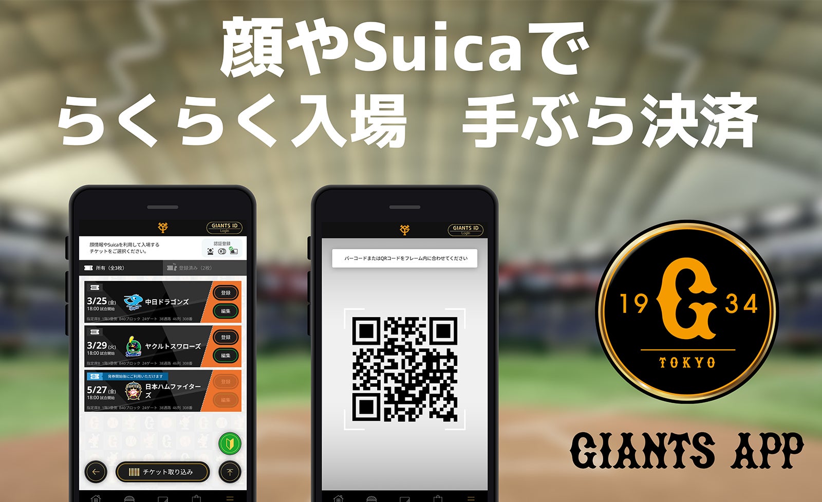 「GIANTS APP」から顔画像またはSuica番号を登録し、お手持ちの入場券とひもづけることで、東京ドームの5か所のゲートにある専用レーンで、顔またはSuicaをかざしてスムーズに入場が可能となります。