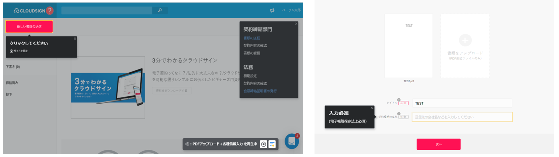 Web完結型クラウド契約サービス「クラウドサイン」「テックタッチ」とカスタマーサクセス領域における実証実験を開始~「早く、安全に契約が締結できる電子契約の普及」を目指す~
