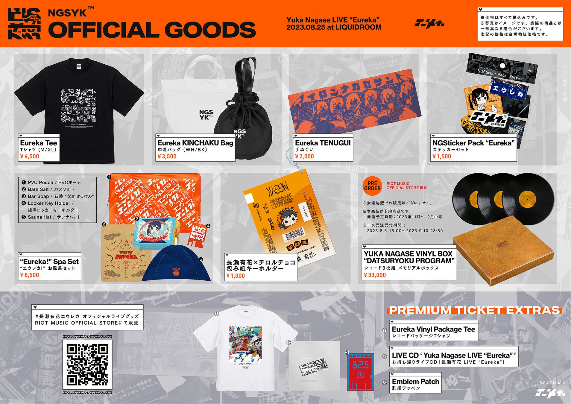 長瀬有花 LIVE”Eureka”配信チケットはStreaming+で、グッズはRIOTMUSIC OFFICIAL STOREにて2023年8月5日(土)18時から販売開始となります。