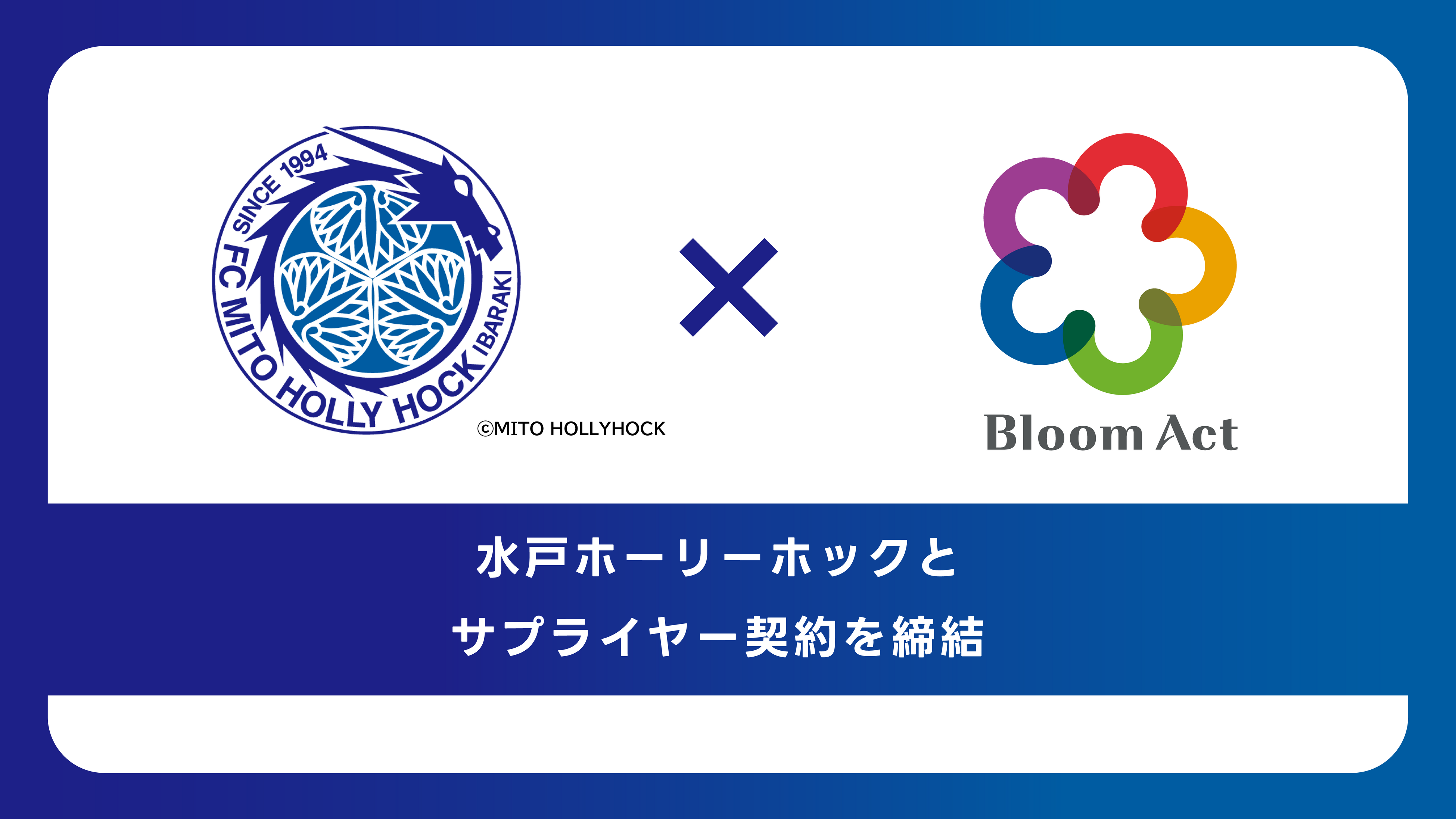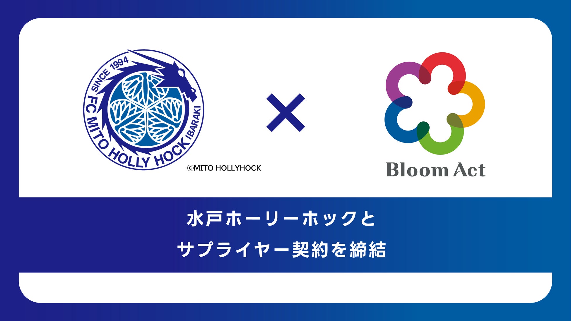 株式会社Bloom Act(代表取締役社長:髙野 峻、本社:茨城県つくば市)は、茨城県水戸市をホームタウンとする、日本プロサッカーチーム(Jリーグ)に加盟する水戸ホーリーホックとサプライヤー契約を締結したことをお知らせいたします。