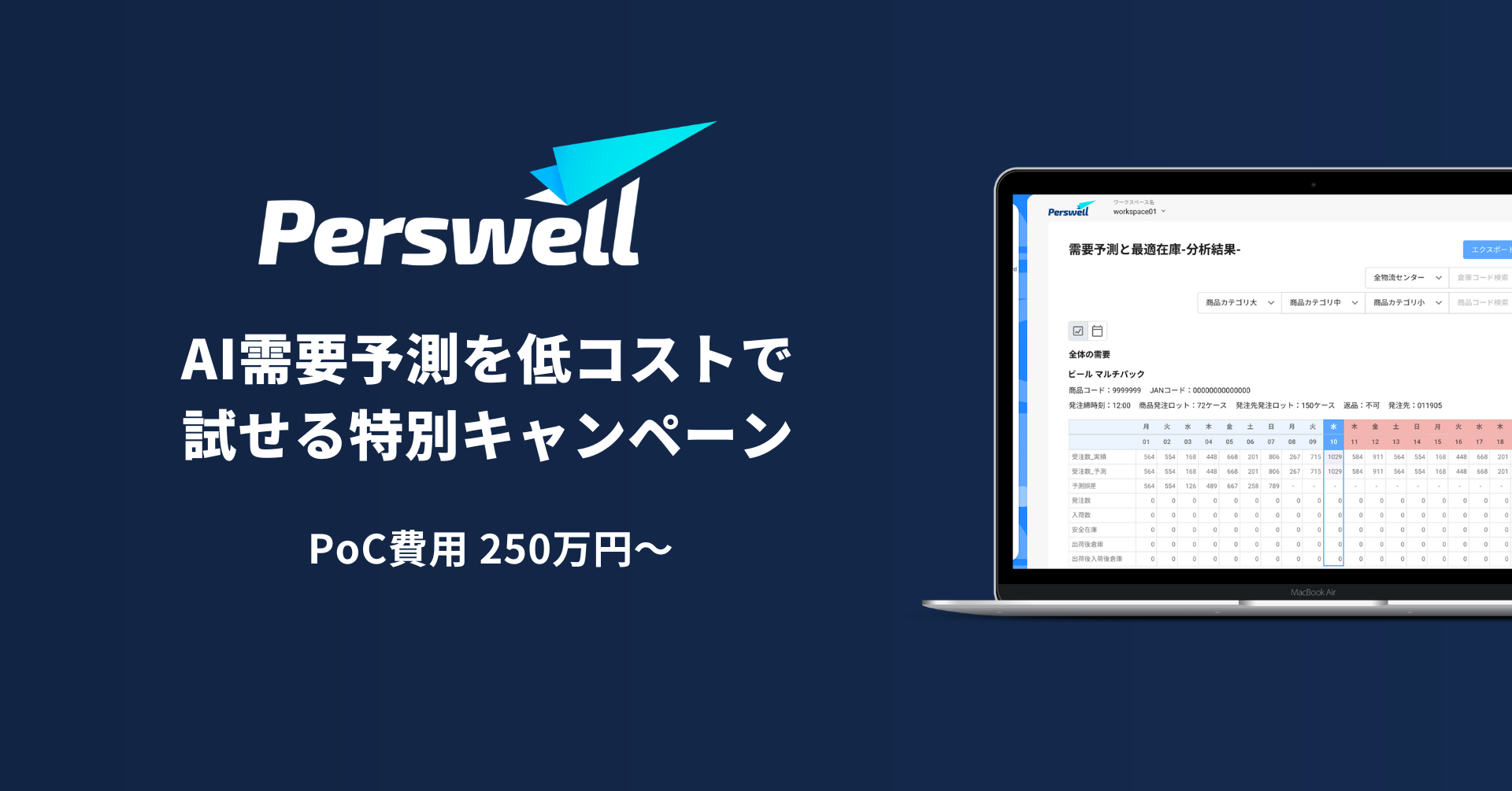 「Perswell」を活用した需要予測のPoCを、特別料金で提供します。