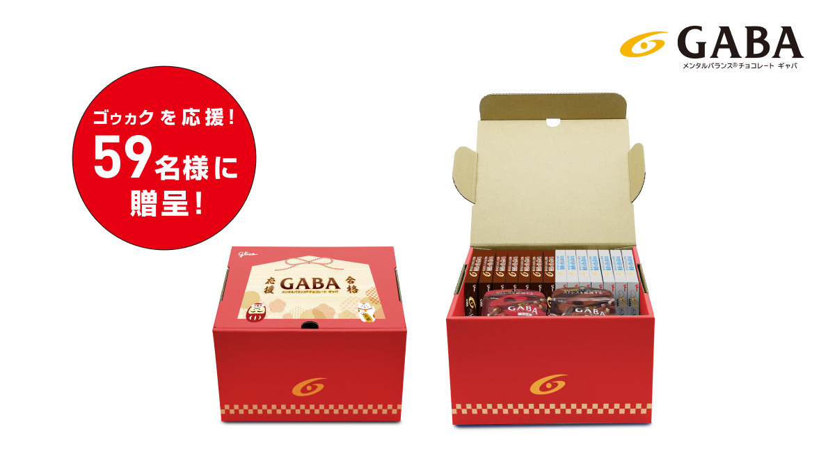 開催期間中、「Studyplus」に毎日継続して勉強記録をつけた対象生徒の中から抽選で、「合格(ごうかく)」にちなんだ59名に、江崎グリコが提供する勉強で疲れたときのサポートに最適な「メンタルバランスⓇチョコレートGABA」詰め合わせ(59個入り)をプレゼントします。