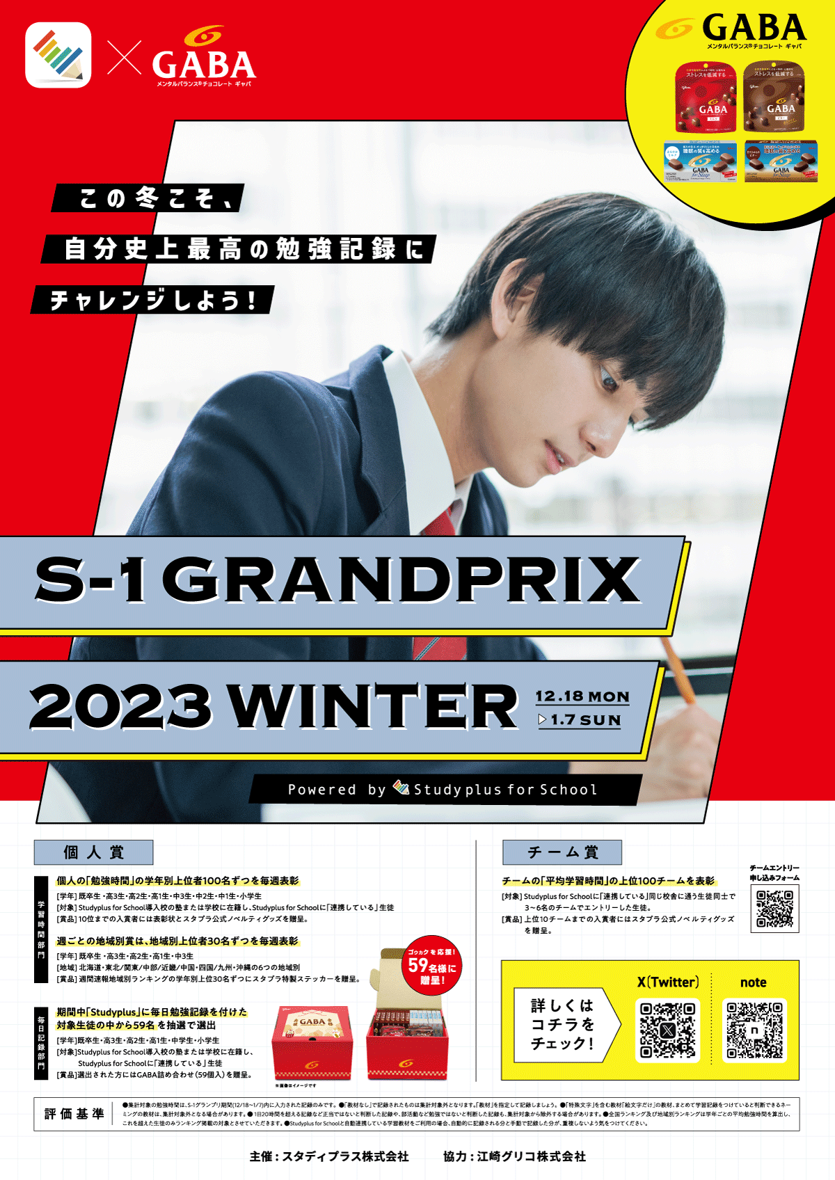 「Studyplus for School」導入校の生徒を対象に開催する勉強時間コンテスト「S-1グランプリ」に、江崎グリコとのタイアップが決定
