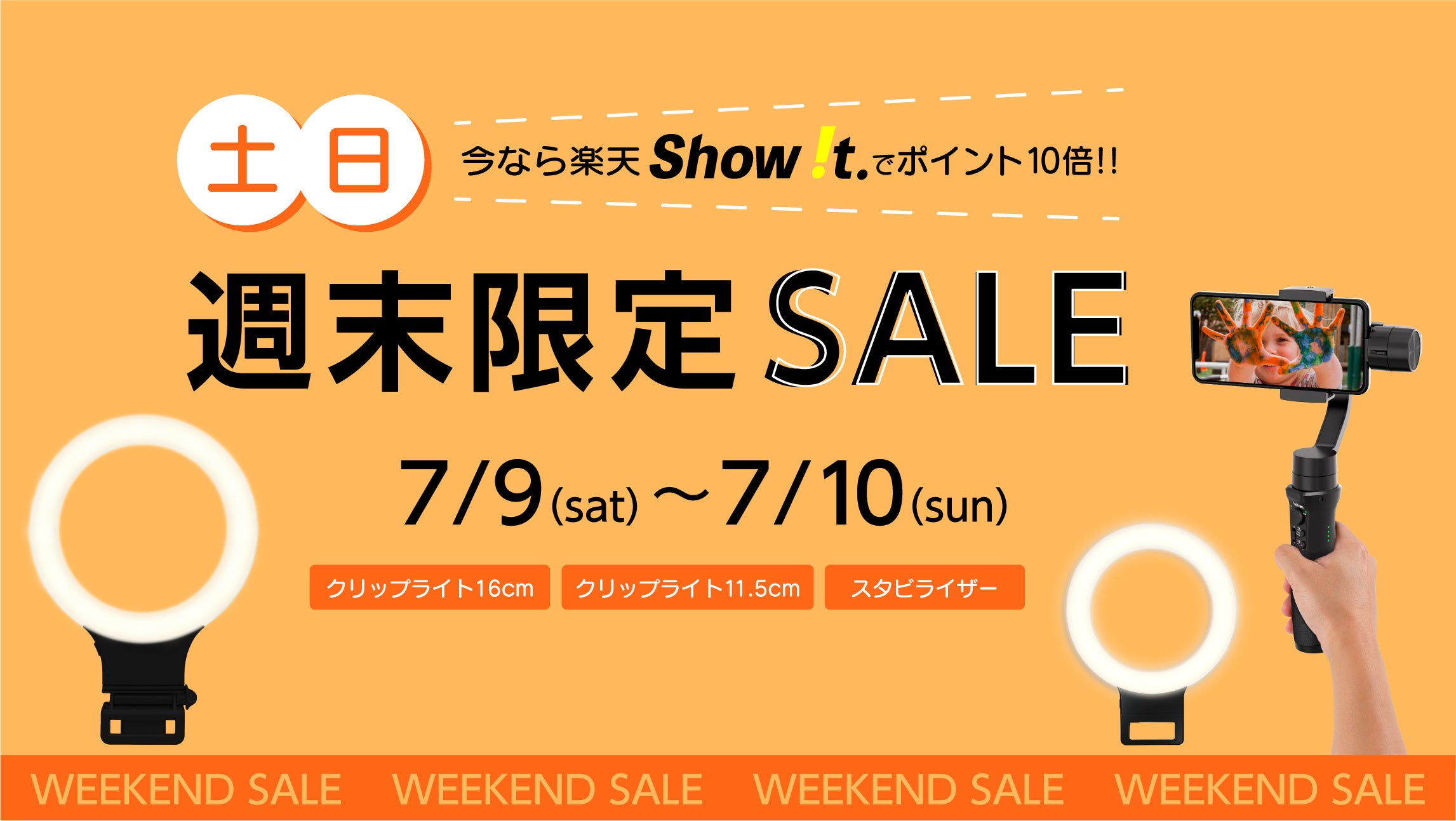 【楽天市場「Show !t」7月9日(土)・10日(日)限定】オンライン会議や動画撮影に最適なクリップ式リングライトとスタビライザーのセールを開催、さらにお得なポイント10倍プレゼントを実施