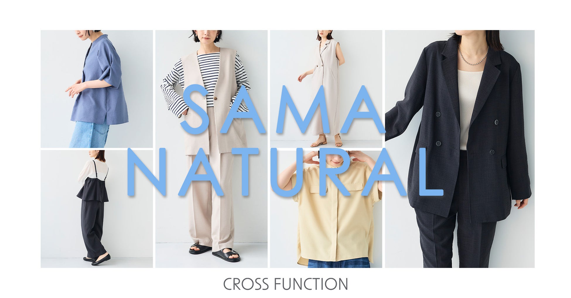 「CROSS FUNCTION(クロス ファンクション)」は、昨年から人気のある「サマナチュラ」のリネンライクシリーズから、アイテム数、カラー数を増やし、カセット服として幅広い着こなしができるアイテムをオンラインストアにて販売開始いたしました。