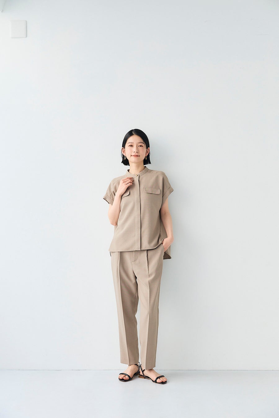 サマナチュラリネンライクセンタープレステーパードパンツ