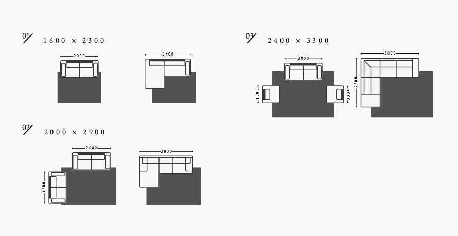 今回のラグは、RELAXFORMのソファのデザインとサイズに最適なバランスで作られており、ソファとの組み合わせでさらに統一感を高め、空間全体に洗練された印象を与えます。ラグは、RELAXFORMのソファが持つエレガントでモダンなデザインに調和するように、細部まで計算された寸法で作成しました。