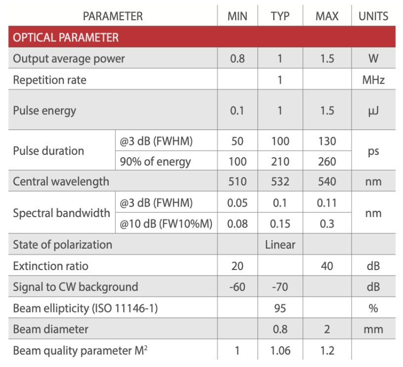 小型グリーンレーザー「AMPX-PICO-532/100/1 Fiber Laser」