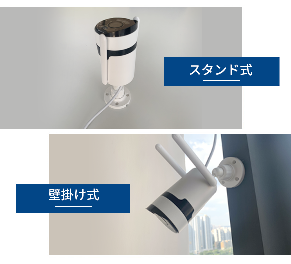 カメラを壁に固定するにはネジ(付属する)が必要です。壁に傷つけたくない場合は、机の上に置いたり、強力両面テープ(別途購入)を貼ったりすることでも固定できます。