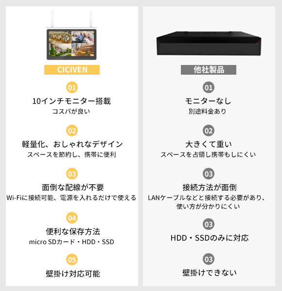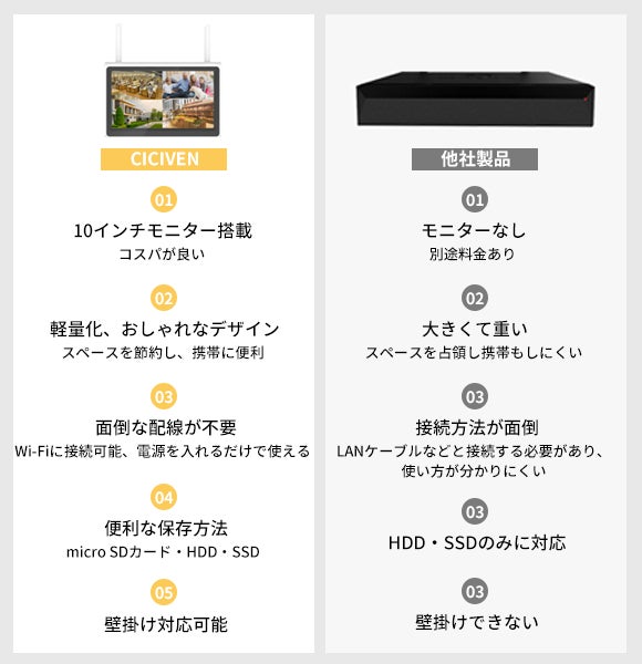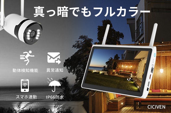 microSDカードサポート!1296P高画質・夜間でもフルカラー!10インチモニター搭載、配線工事不要の屋外兼用防犯カメラ「CICIVEN」