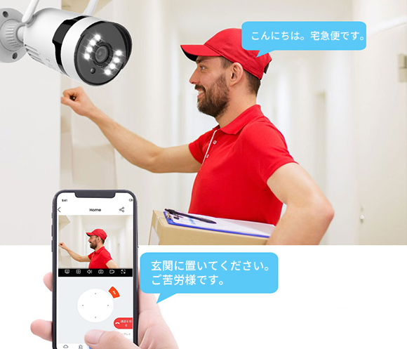 お留守番中の子供、親、ペットに声をかけたり、荷物の置き場所を指示したり、侵入者を威嚇したり…様々な場合で役立ちます。
